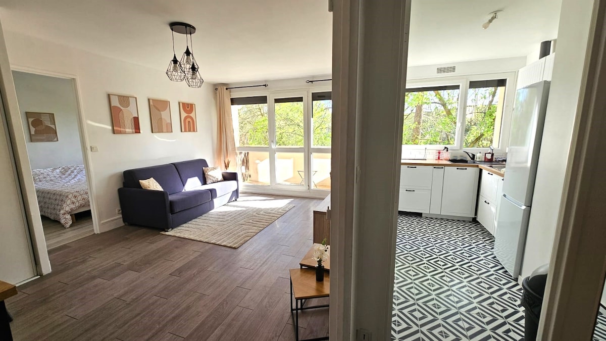 Optez pour un appartement cosy, moderne et idéalement situé. Dans un quartier calme et agréable, proche de toutes commodités essentielles et à quelques pas du métro ligne 8 "Pointe du Lac" vous permettant un accès facile et rapide à la capitale. Salon lumineux donnant accès au balcon avec un canapé convertible et coin café ☕️ Smart TV, internet haut débit et Netflix. Cuisine toute équipée, chambre lit double, avec rangements. Idéal pour les couples, amis, familles et voyages d’affaires!