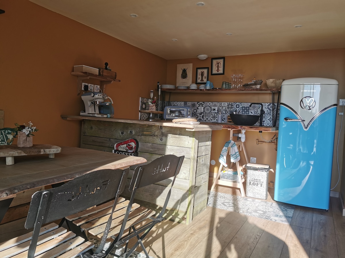Σε μια παλιά αγροικία, το Le Cottage είναι ένα πλήρως ανακαινισμένο, κλιματιζόμενο δωμάτιο επισκεπτών, σχεδιασμένο για να σας προσφέρει μια πραγματική στιγμή απόδρασης. Απολαύστε έναν ιδιωτικό και άνετο χώρο με πολλές παροχές ειδικά για την ευημερία σας. ✨ Ιδιωτικό σπα με μπανιέρα για λουτροθεραπεία, σάουνα υπερύθρων Καφετιέρα και βραστήρας (διατίθενται τσάι και καφές) Ψυγείο και φούρνος μικροκυμάτων 🔊 Ηχείο Marshall Προβολέας οροφής με πρόσβαση σε YouTube, Netflix, Disney+ και κανάλια Canal+
