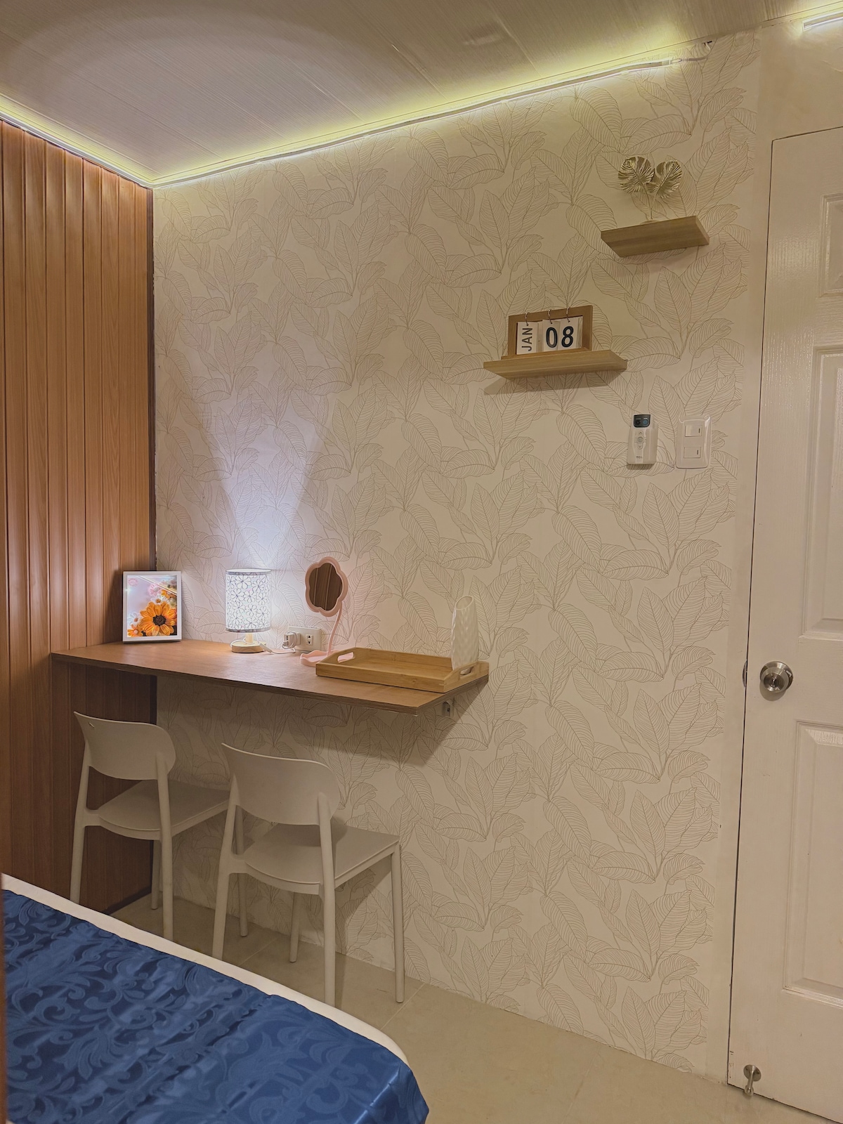 Ελάτε και μείνετε στο άνετο και ευχάριστο διαμέρισμα του Brent που βρίσκεται κατά μήκος του αυτοκινητόδρομου Maharlika στο Brgy. Calogcog, Tanauan, Leyte. Υπάρχει διαθέσιμος χώρος στάθμευσης ακριβώς μπροστά από τις εγκαταστάσεις. Το υπνοδωμάτιο είναι πλήρως επιπλωμένο, με ένα άνετο κρεβάτι και ένα κρεβάτι που ανοίγει. Η κουζίνα είναι ξεχωριστή, επιπλωμένη και πλήρως κλιματιζόμενη. Η τουαλέτα και το ντους είναι ανάμεσα στο υπνοδωμάτιο και την κουζίνα. Η ταράτσα είναι διαθέσιμη για χρήση με επιπλέον χρεώσεις.