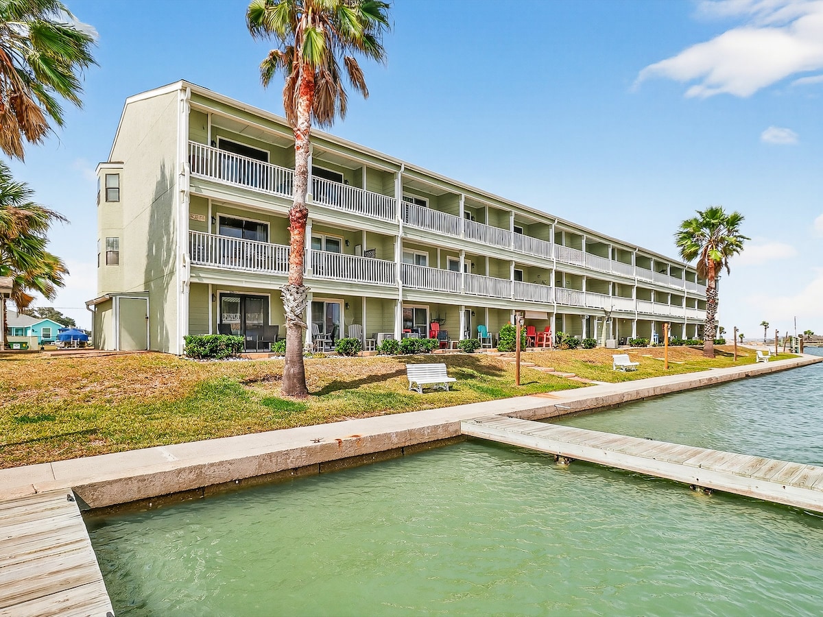 Walk in the front door to see beautiful Aransas Bay across the yard of windswept oaks. This gorgeous 3 bdrm 2 bathone-story condo has a boat ramp, day slips, boat & trailer prkg & lighted 750 ft pier. A sparkling pool also awaits you! Kitchen- quartz counters & stainless appliances; fully stocked with dishware, cookware, regular and pod coffee makers. The bathrooms are updated with quartz counters, large showers with grab bars. Luxury mattresses and bedding. (Trundle bed is for children only).