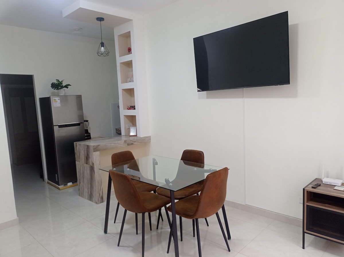 Acogedor e impecable departamento de 60 m2, en el corazón de Miraflores, a pasos del Parque Kennedy, Larcomar y Malecones. Habitación principal con cama Queen, escritorio, Smart TV de 42”, Wifi , baño completo. Cocina abierta, sala y comedor completa. Cuenta también con 1/2 baño. Al estar hospedado aquí, puede sentirse tranquilo, siempre se sigue el Protocolo de Limpieza Avanzada de Airbnb. En la estancia podrán contar con productos de limpieza adicionales.