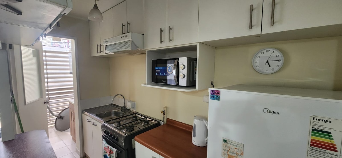 Depto de 2 dormitorios y 2 baños, totalmente equipado. Cómodo, luminoso y con todo lo necesario para una estadía agradable. Está totalmente equipado para que disfrutes tu estadía con tranquilidad: • Cocina con ollas, vajilla, servicios, hervidor, licuadora y sandwichera. • Plancha y tabla de planchar para mayor comodidad. • Baños con todos los enseres esenciales. • Espacios luminosos, acogedores y listos para recibirte. Un lugar pensado para que solo te preocupes de disfrutar tu viaje.