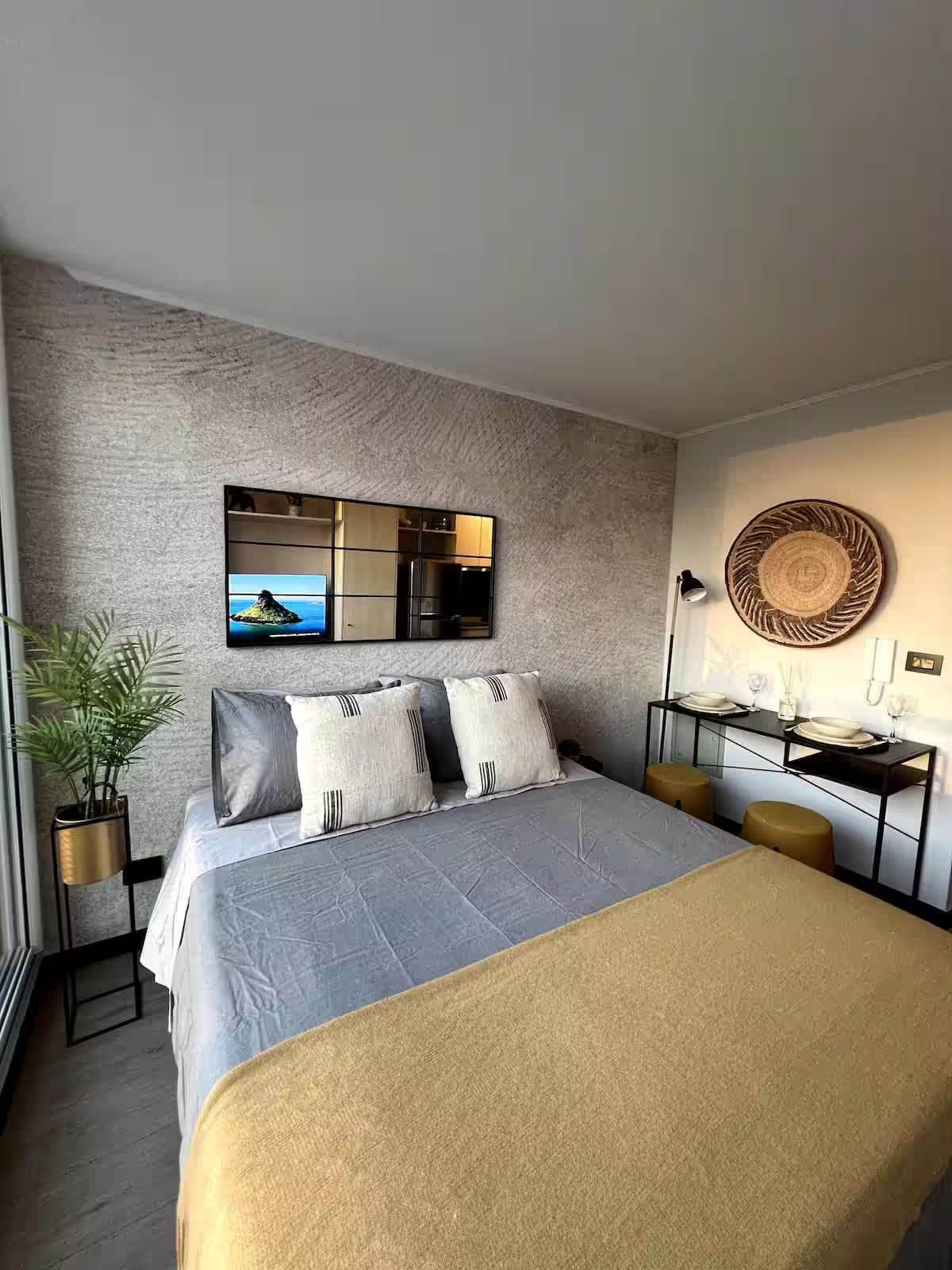 Step inside a cozy 1-bed studio flat with private terrace, BBQ, fast Wi-Fi, and sweeping skyline views. Unwind above Santiago’s bustling core. Location: Walk 5 min to Cerro Santa Lucia, metro station, cafés, museums and iconic buildings from the historic centre, where the city was born. Sleep & relax: King bed, blackout curtains, extra pillows and blankets, courtyard facing. Extras: Rooftop pool, 24-hr doorman, smart TV, bidet, hammock, A/C and lot of sunlight. Book your downtown stay today!