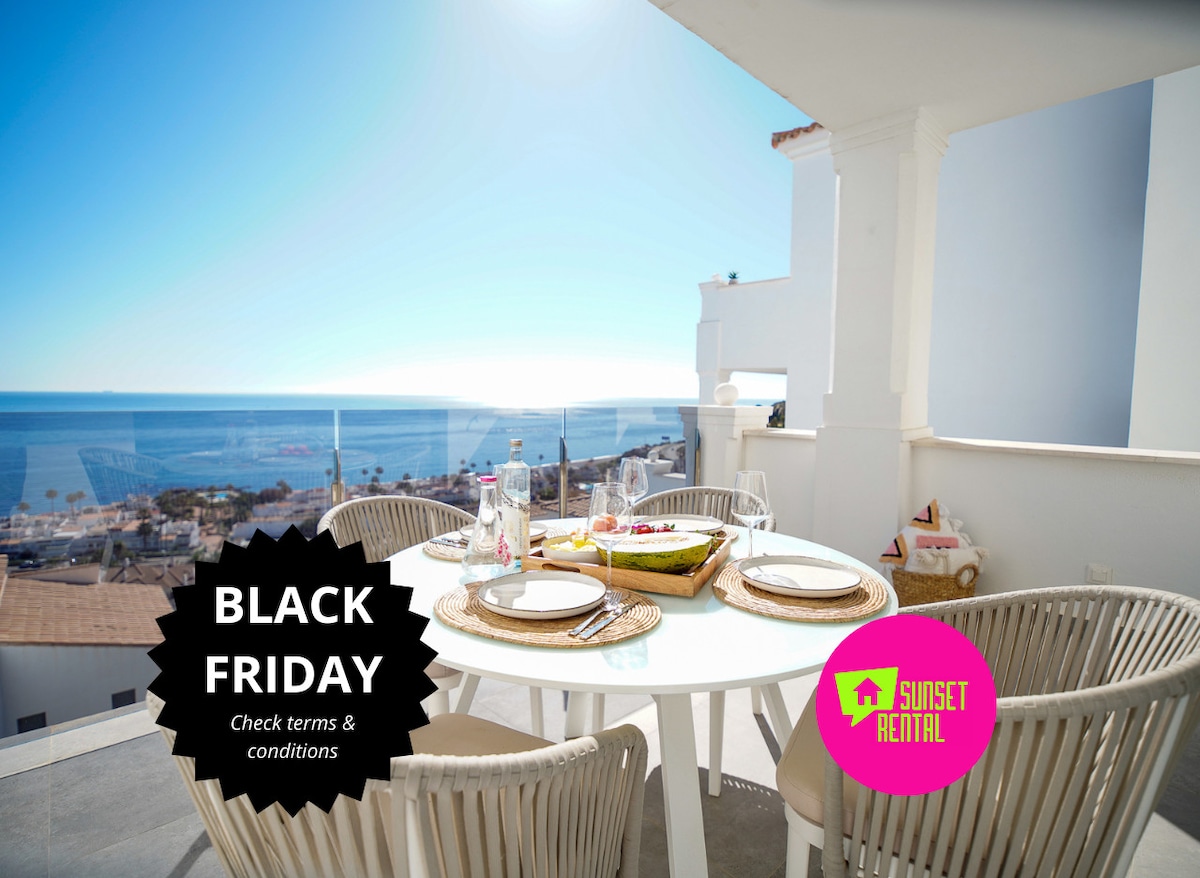 Black Friday Discount for all stays until February 28th! Only throughout this weekend November 28-30th. Book now to secure the best price! Spacious modern and comfortable apartment with stunning seaviews from the big terrace. It's located in the Blue Suites urbanization with access to 3 pools (1 heated pool opened all year), sauna and gym. The apartment is furnished with top quality items and all curated details for a relaxing and comfortable stay.