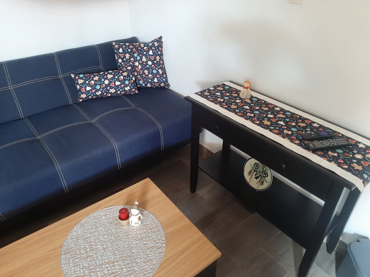 Όμορφο διαμέρισμα με μεγάλη βεράντα, καθαρό και πολύ φιλόξενο. Η κατασκευή είναι νέα, όπως και τα έπιπλα στο εσωτερικό του. Το διαμέρισμα είναι ανοιχτού τύπου, υπάρχει μόνο ένα παραβάν που χωρίζει την περιοχή του υπνοδωματίου από το σαλόνι, για να δώσει λίγη ιδιωτικότητα. Υπάρχει ένας καναπές-κρεβάτι, διπλού μεγέθους, στο σαλόνι Το διαμέρισμα διαθέτει μεγάλα παράθυρα που παρέχουν εξαιρετικό φωτισμό. και διαθέτει μια όμορφη βεράντα, που περιβάλλεται από φυτά.