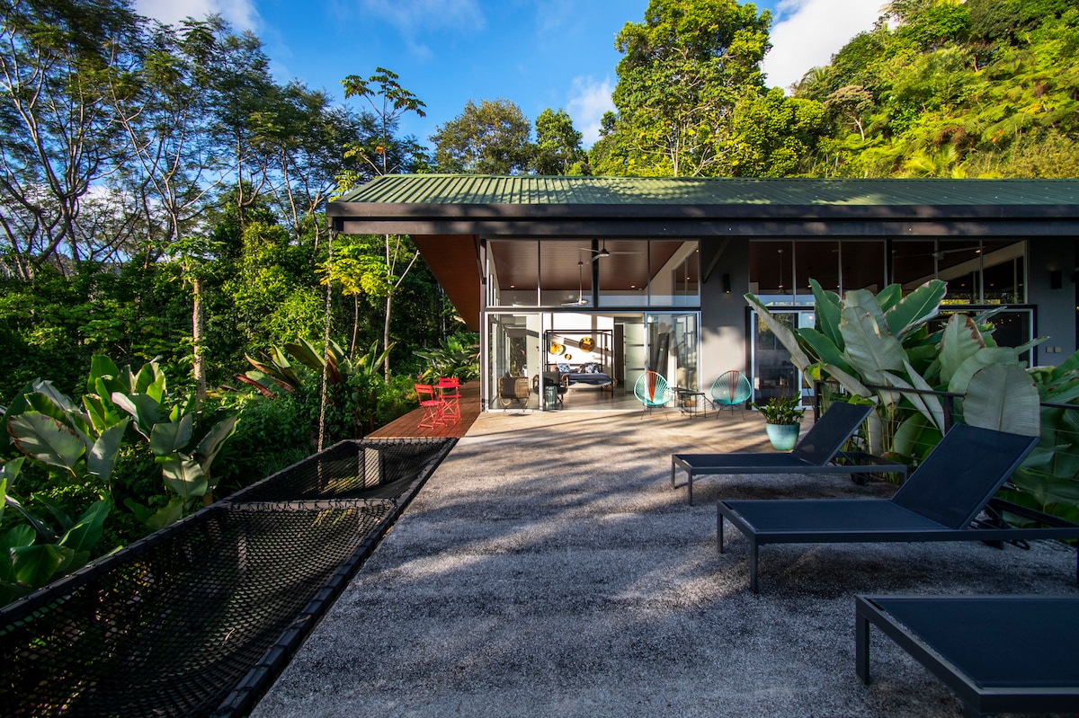 Απολαύστε αυτό το εκπληκτικό, μοντέρνο κατάλυμα, που βρίσκεται σε 160 στρέμματα καταπράσινου τροπικού δάσους με μια μικρή λίμνη και άφθονα άγρια ζώα. Απολαύστε αποκλειστική πρόσβαση στην ιδιωτική σας πισίνα και μια ευρύχωρη σκεπαστή βεράντα, ιδανική για να παρατηρήσετε τη ζωντανή ομορφιά του παρθένου τοπίου της Κόστα Ρίκα. Μόλις λίγα λεπτά από μία από τις πιο εκπληκτικές παραλίες με φοίνικες στην Κόστα Ρίκα! Βολικά τοποθετημένο έξω από την Costanera (βλ. σημειώσεις), το κατάλυμά μας απέχει 2 ώρες με το αυτοκίνητο από το Διεθνές Αεροδρόμιο Juan Santa Maria (SJO).