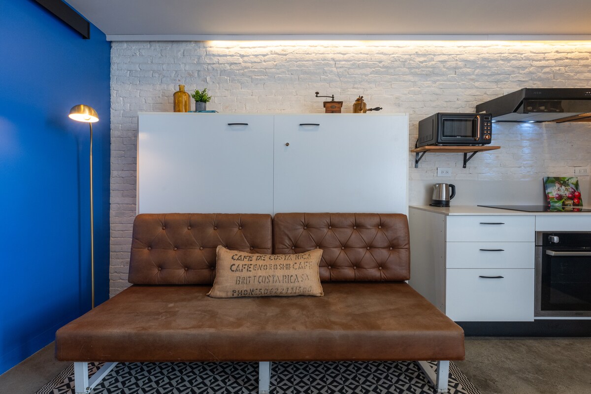 New and exclusive Golden Coffee Studio, inspired by the history of Costa Rican coffee this apartment brings the best views of San Jose city. Walkable of the beaten heart of trendy gastronomic area Barrio Escalante, surrounded by the local vibes this place is on the best spot downtown for you to get ready and discover Costa Rica. One master room and a unique queen wallbed make this place an inviting and fun place for couples, friends and families. Spectacular amenities 100MBps Fiber optic Wifi