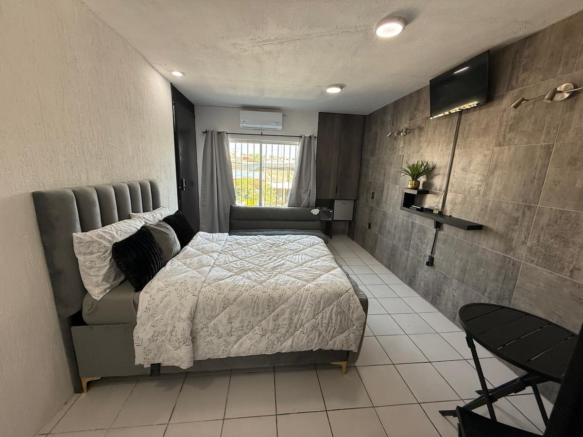 - Άνετο και αποκλειστικό στούντιο executive με κρεβάτι queen size, γραφείο και κλιματισμό. - Μπαλκόνι για καθαρό αέρα. - Μια εξοπλισμένη κουζίνα. - Είσοδος με έξυπνη κλειδαριά και εξατομικευμένο και αποκλειστικό κλειδί για κάθε επισκέπτη. - Πανοραμική ταράτσα με εστιατόριο στον 9ο όροφο - Αίθουσα συνεδριάσεων εξοπλισμένη για επαγγελματικές συναντήσεις (ελέγξτε τη διαθεσιμότητα) - Πρόσβαση 24 ώρες το 24-ωρο με εξατομικευμένο κωδικό. ΣΗΜΑΝΤΙΚΌ: Δεν διαθέτουμε ιδιωτικό χώρο στάθμευσης μέσα στην ιδιοκτησία.