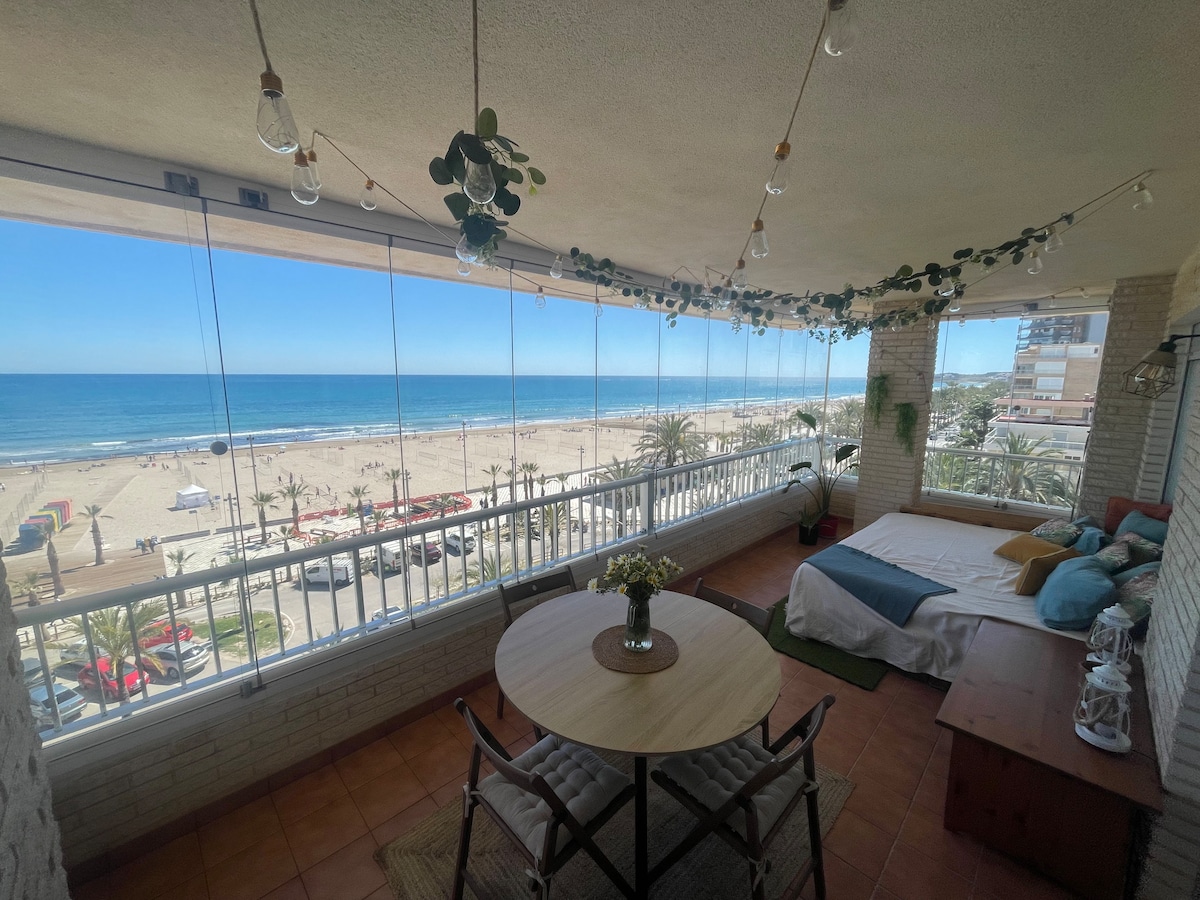 Precioso apartamento en primera línea de playa (salida directa al mar) con inmejorables vistas al mediterráneo. Ideal para parejas y familias con hijos. Prohibido fiestas y ruidos.Disponible para Largas Estancias. Consúltenos. Zona conectada con transporte público: TRAM y Autobuses con el centro ciudad. Todos los servicios: Restaurantes, Supermercados, Farmacia. Cuenta con una terraza frontal e impresionantes vistas al Castillo de Santa Bárbara; donde podrá relajarse observando las olas del Mar