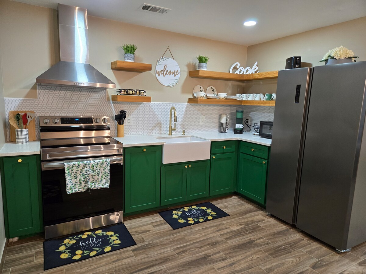 Peaceful mornings and fun-filled afternoons await you at this unique experience! This 4 bedroom 2 bath house comes with a Full kitchen, granite counter tops and all stainless steel appliances, Indoor and outdoor patio, washer and dryer, and small movie night set up with 4 recliners!