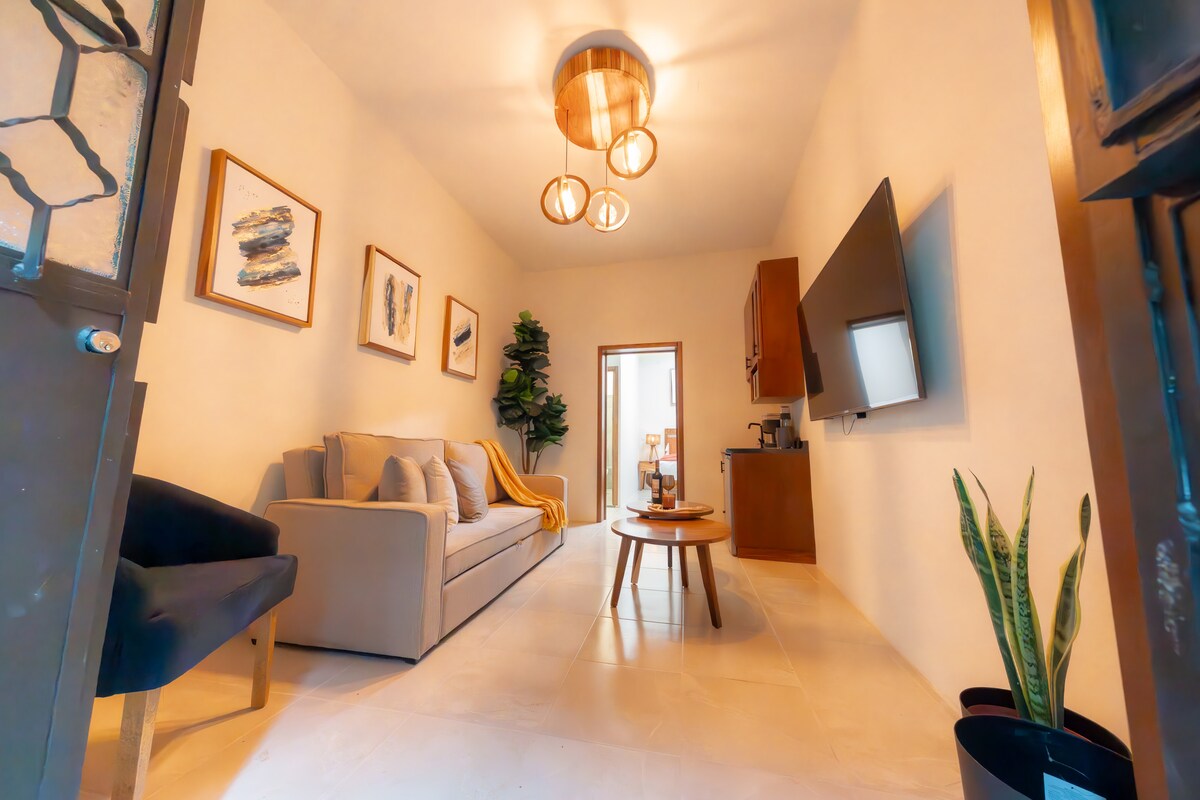 Moderno, cómodo y con ubicación inmejorable. A una cuadra de la plaza principal y cerca de todo lo que hace especial a Etzatlán. Un espacio perfecto para descansar después de explorar el corazón de Etzatlán. Este estudio moderno y cómodo incluye sala con TV, baño completo y una cama matrimonial, todo pensado para ofrecerte una estancia práctica y cálida.