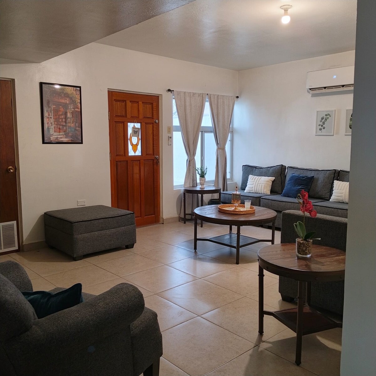 Απολαύστε την απλότητα αυτού του ήσυχου καταλύματος σε κλειστό κτήμα με φυλάκιο ασφαλείας, κοντά στο Προξενείο σε 15 λεπτά με το αυτοκίνητο, διεθνείς γέφυρες σε 10 έως 20 λεπτά, εστιατόρια (μπορείτε να φτάσετε με τα πόδια λόγω της εγγύτητας), εμπορικά κέντρα, φαρμακεία, βιομηχανικά πάρκα, βενζινάδικα, τράπεζες, δίπλα στο Tecnológico de Juárez, καταστήματα OXXO, εστιατόρια γρήγορου φαγητού, Starbucks κ.λπ.