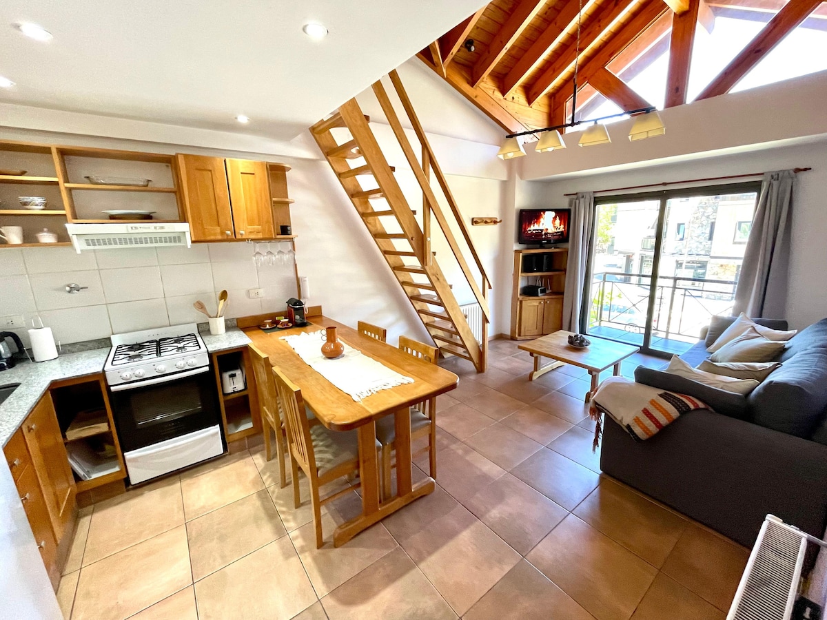 Κάντε κράτηση χωρίς άγχος: Αν τα σχέδιά σας αλλάξουν, μπορείτε να ακυρώσετε έως και 5 ημέρες πριν και θα σας επιστρέψουμε όλα τα χρήματα. Διαμέρισμα σκανδιναβικού στιλ, άνετο και φωτεινό, λίγα τετράγωνα από εστιατόρια, μπαρ και καταστήματα στο κέντρο της πόλης. Ιδιωτικό μπαλκόνι με ανοιχτή θέα, ιδανικό για να απολαύσετε τον αέρα του βουνού. Αποκλειστικός χώρος στάθμευσης μέσα στο κτίριο, δωρεάν. Γρήγορο Wi-Fi, τηλεόραση, εξοπλισμένη κουζίνα, πλυντήριο-στεγνωτήριο και θέρμανση. Ιδανικό για χαλάρωση ή εξερεύνηση του Chapelco!