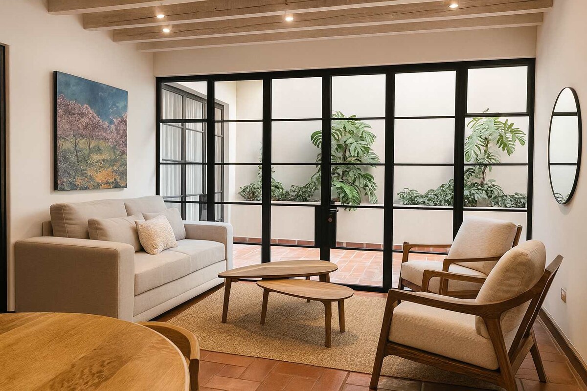 Espacio privado, suit bathroom. Amplia inmaculada, perfectamente sanitizada, con mucha luz natural ! Perfecta ubicación en la Zona Centro, cerca de restaurantes, galerías, tiendas y más ! Está a solo 5 minutos caminando del Jardín principal ! Estacionamiento público a un minuto con tarifa accesible o espacios seguros para estacionarse en la calle. Es perfecto para personas solteras, parejas, familias, grupos y aventureros. Reserva 3 noches y la cuarta será de cortesía ! Consulta previa.