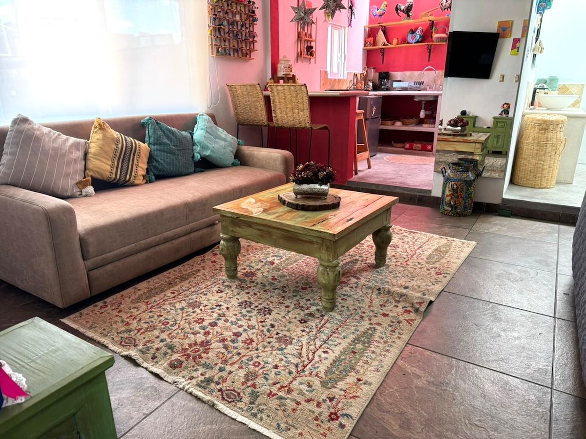 "Όμορφες" σουίτες διακοσμημένες με αγάπη! Γεμάτο καλλιτεχνικές λεπτομέρειες και ξεχωριστές στιγμές. Θέλουμε να σας προσφέρουμε έναν χώρο, άνετο και ήσυχο, ώστε να μπορείτε να απολαύσετε τη διαμονή σας στο San Miguel de Allende. Βρισκόμαστε στο πάνω μέρος του κέντρου του Σαν Μιγκέλ. Μόλις 10 λεπτά με τα πόδια από την ενορία! Χάρη σε αυτό, μπορείτε να είστε κοντά στο κέντρο και να έχετε ηρεμία και ξεκούραση.