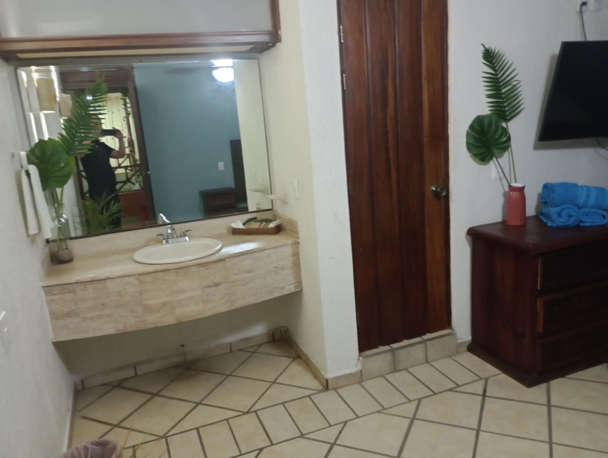 Ευρύχωρο μπανγκαλόου σε μπουτίκ παραθαλάσσιο ξενοδοχείο στο Melaque, ιδανικό για οικογένειες ή παρέες έως 6 ατόμων. Διαθέτει πλήρως εξοπλισμένη κουζίνα, τραπεζαρία, σαλόνι με φυσικό αέρα, κλιματισμό, ανεμιστήρες οροφής και ιδιωτικό μπαλκόνι με θέα στην πισίνα και τη θάλασσα. Απολαύστε μια άνετη, φωτεινή και ήρεμη ατμόσφαιρα σε ένα σπίτι με άμεση πρόσβαση στην παραλία και ασανσέρ.