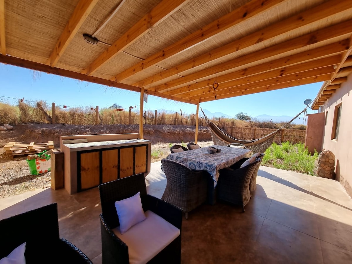 A solo 3 km del centro de San Pedro, en el Ayllu de Checkar, se encuentra Casa Ohana, casa familiar de 140 m2, que cuenta con 3 habitaciones, dos baños, comedor, sala de estar, terraza, quincho y hermosas áreas verdes y vistas privilegiadas a la cordillera, a los atardeceres y al magnífico cielo nocturno del Desierto de Atacama. Con capacidad para 7 a 8 personas, en camas individuales y dobles, ideales para familias y grupos. Recomendamos llegar en vehículo.