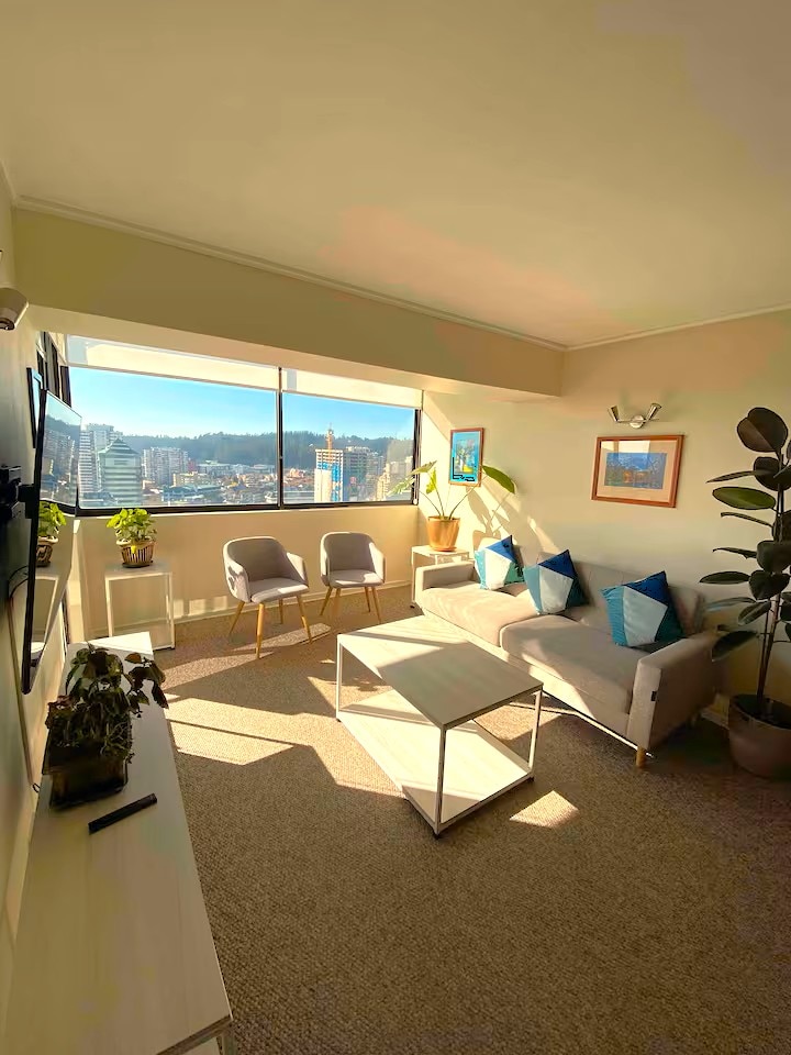 Σημεία ενδιαφέροντος: Centro de Concepción, Caleta Lenga, Playa de Dichato, Pingueral, Watch Huascar στο Talcahuano, Minas Subterráneas στη Lota, Parque Bicentenario, Mall el Trebol, del Centro και Mirador. Οι λόγοι που θα σας αρέσει ο χώρος μου είναι η ασφάλεια, η άνεση και η μικρή απόσταση από το κέντρο. Ο χώρος μου είναι ιδανικός για ζευγάρια, λάτρεις της περιπέτειας και ταξιδιώτες για επαγγελματικούς σκοπούς. Διαθέτει υπόγειο χώρο στάθμευσης, οπότε η άφιξη με το όχημα είναι διακριτική μέσω της οδού Rengo.