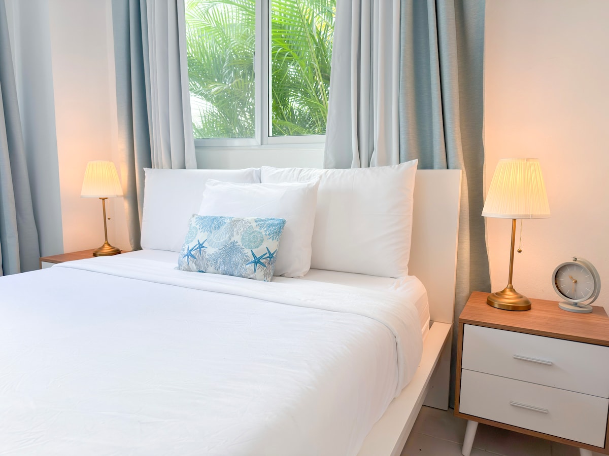 Απολαύστε αυτό το πλήρως εξοπλισμένο διαμέρισμα με θέα στην πισίνα σε ιδιωτική κατοικία με 24ωρη ασφάλεια. Έξυπνη κλειδαριά για check-in χωρίς παρουσία οικοδεσπότη και κάμερα ασφαλείας στο διάδρομο. Πολλαπλές πετσέτες, σεντόνια και παπλώματα. 5 λεπτά από την παραλία Hemingway 15 λεπτά από την παραλία Boca Chica 15 λεπτά από το Σαν Πέδρο ντε Μακόρις 25 λεπτά από το Διεθνές Αεροδρόμιο SDQ 45 λεπτά από το Διεθνές Αεροδρόμιο La Romana 45 λεπτά από το Σάντο Ντομίνγκο 1 ώρα από την Πούντα Κάνα