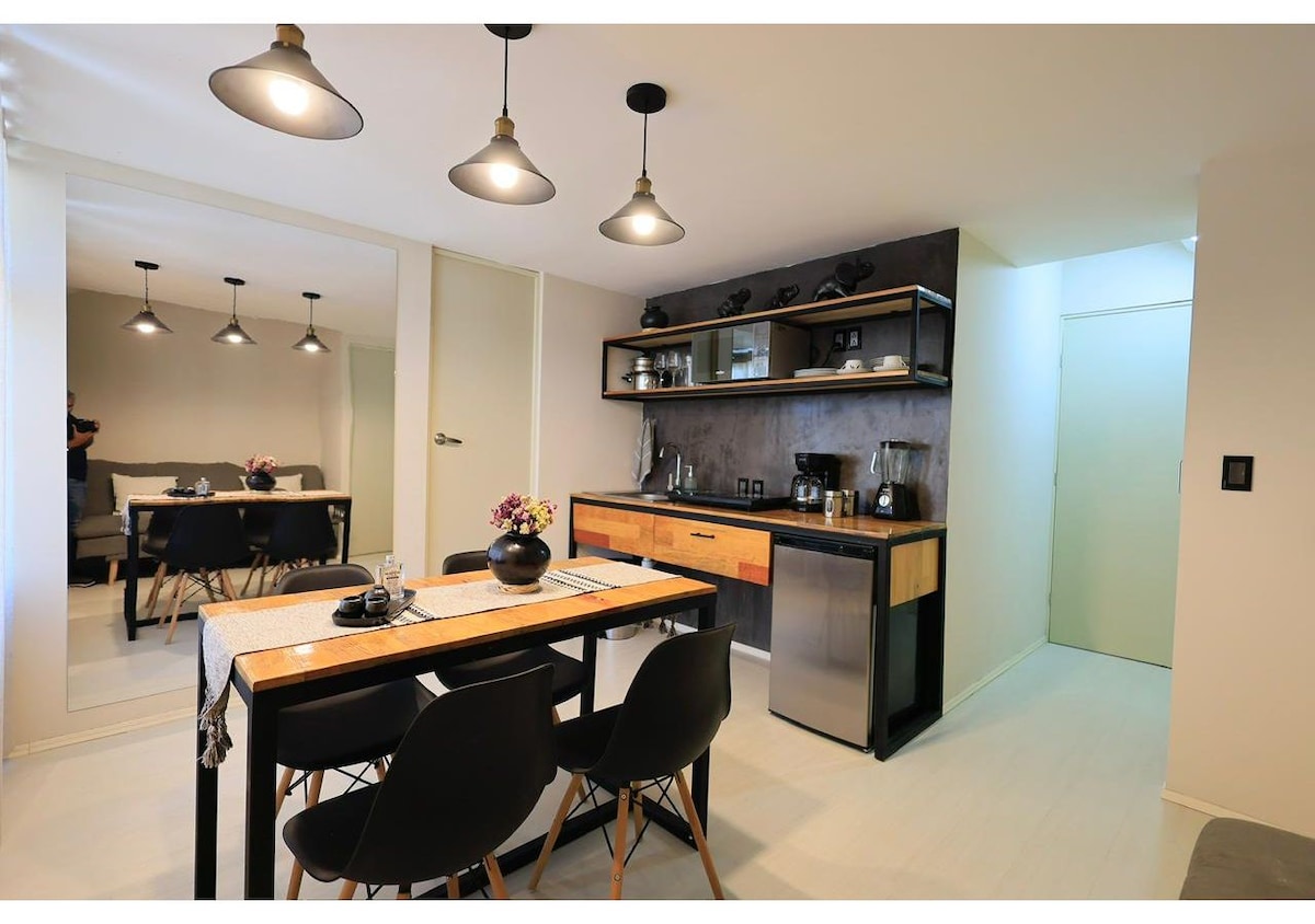 Σοφίτα, μπροστά από το μεγαλύτερο πάρκο της πόλης, δίπλα στο ξενοδοχείο "Grand Fiesta Americana", 15 λεπτά από τον ναό "Santo Domingo de Guzmán" και τους πιο γνωστούς τουριστικούς, πολιτιστικούς, γαμήλιους χώρους και αξιοθέατα ψυχαγωγίας. Γνωρίστε το "Barrio de Jalatlaco", διάσημο για την αρχιτεκτονική και τη μποέμικη ατμόσφαιρα. Η βεράντα έχει ασύγκριτη θέα στα βουνά και τις κορυφές των δέντρων. Σχεδιασμός, τοποθεσία και λειτουργικότητα. Ένα αποκλειστικό μέρος για να ερωτευτείτε την Οαχάκα!!