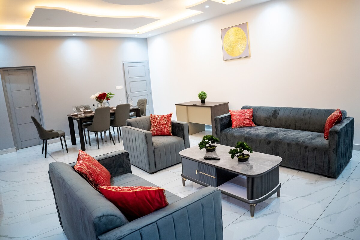Καλώς ήρθατε στο ασφαλές και εύκολα προσβάσιμο διαμέρισμά μας στην άκρη του δρόμου στη Ντουάλα. Εδώ, η ηρεμία σας είναι εξασφαλισμένη χάρη σε έναν 24ωρο φύλακα και ένα σύστημα απομακρυσμένης παρακολούθησης. Το διαμέρισμα περιλαμβάνει σαλόνι και υπνοδωμάτιο με τηλεόραση, πλήρως εξοπλισμένη κουζίνα, απεριόριστο Wi-Fi και γεννήτρια. Μπορείτε επίσης να απολαύσετε έναν εξωτερικό χώρο για να χαλαρώσετε. Επομένως, είναι ένα ασφαλές, άνετο και καθησυχαστικό μέρος για τη διαμονή σας.