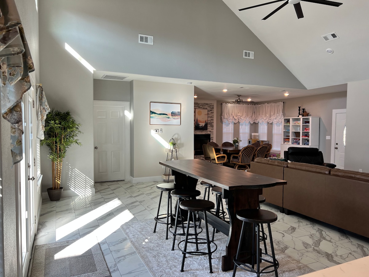 A great place for your rehearsal dinner or event! Pickleball, Sauna, hot tub, heated Swim Spa, Fire Pit, Xbox One, Pinball, Skee Ball, 2 8' Pool Tables! For groups of 11 or more, there is a 4th bedroom w/ full bath & TV in a 300 sq ft ADU. For groups of 14 or more, there is a 5th bedroom in a 2nd ADU. Dart boards, Arcades, 2 Ping Pong, Air Hockey, Soccer Goals, 2 Shuffleboard tables, Volleyball, 3 BBQ including a smoker, Corn hole. Poker and Blackjack Table. 7 Smart TVs! Optional Event space.