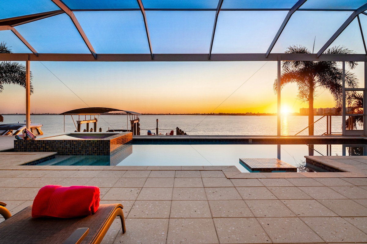 Με οικοδεσπότη τον Paul και την Alicia από το Dancing Palms Vacations, αυτό το ολοκαίνουργιο κατάλυμα προσφέρει θέα στον Κόλπο από τη μπροστινή βεράντα, λίγα μόνο βήματα από την παραλία με τη λευκή άμμο. Το καταφύγιο 3BR/2BA φιλοξενεί 8 άτομα με 2 υπνοδωμάτια KING, ιδιωτική θερμαινόμενη πισίνα και περιφραγμένο εξωτερικό σαλόνι/τραπεζαρία με τηλεόραση και ατμόσφαιρα μπουτίκ παραθαλάσσιου ξενοδοχείου. Απολαύστε ολοκαίνουργια έπιπλα, παιχνίδια και εξοπλισμό παραλίας. Σαλόνι/κουζίνα/τραπεζαρία με ανοιχτή διάταξη και Smart TV 85". Κατάλληλο για οικογένειες και σε κοντινή απόσταση από μπαρ, εστιατόρια, καταστήματα και τη μαρίνα.