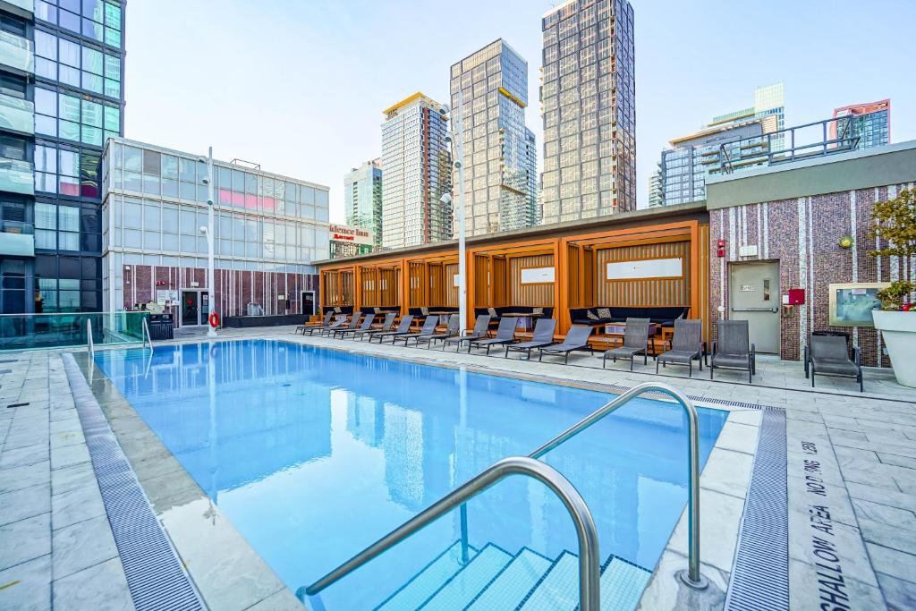 Πολυτελές διαμέρισμα 1 υπνοδωματίου στο κέντρο της πόλης, λίγα σκαλοπάτια από το Scotiabank Arena, το Rogers Centre και το Harbourfront. Ιδανικό για επαγγελματικά ταξίδια, ζευγάρια και αποδράσεις στο Τορόντο. Αυτό το μοντέρνο παραθαλάσσιο διαμέρισμα βρίσκεται στην ψυχαγωγική και οικονομική περιοχή του Τορόντο, κοντά σε κορυφαία αξιοθέατα, μέσα μεταφοράς, εστιατόρια και νυχτερινή ζωή. Απολαύστε κορυφαίες παροχές κτιρίου, έναν πεντακάθαρο, καλοσχεδιασμένο χώρο και μια άνετη διαμονή σε ξενοδοχειακό στιλ. Ιδανικό για όσους ταξιδεύουν για επαγγελματικούς σκοπούς, για ζευγάρια και για τουρίστες που αναζητούν κατάλυμα στο κέντρο του Τορόντο.