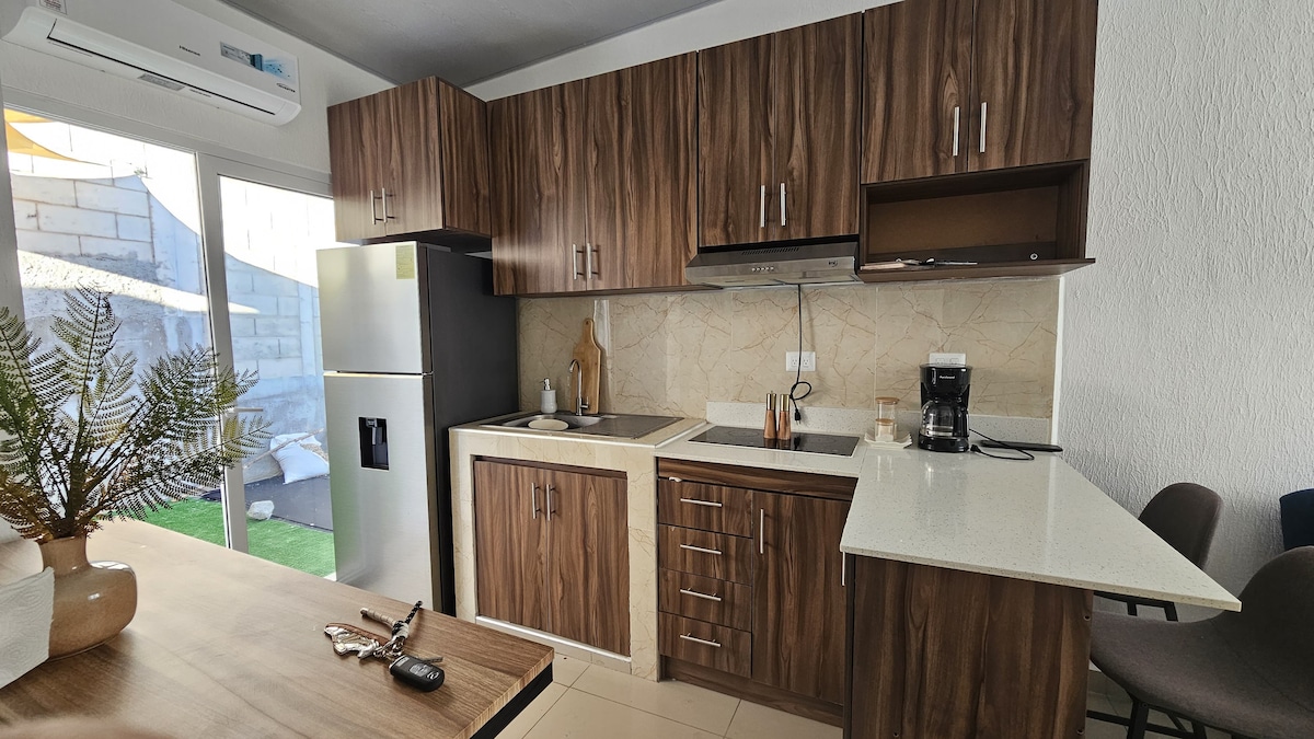 Απολαύστε μια ζεστή και άνετη διαμονή σε αυτό το ασφαλές κατάλυμα που βρίσκεται σε μια περιφραγμένη κοινότητα στο Μεταπάν του Ελ Σαλβαδόρ. Ο χώρος διαθέτει 2 υπνοδωμάτια, 1 μπάνιο, κλιματισμό, γρήγορο Wi-Fi, πλήρως εξοπλισμένη κουζίνα, ιδιωτικό πλυντήριο ρούχων και πάρκινγκ. Οι επισκέπτες απολαμβάνουν ασφάλεια 24 ώρες το 24ωρο, 7 ημέρες την εβδομάδα, καθώς και κοινόχρηστη πισίνα και πάρκο. Μόλις 5 λεπτά από το κέντρο της πόλης με πολλά εστιατόρια σε κοντινή απόσταση, κοντά στα βουνά, τα σύνορα της Γουατεμάλας, το Εθνικό Πάρκο Μοντεκρίστο, τη λίμνη Γκούιτζα και υπέροχα σημεία για να εξερευνήσετε τη φύση.