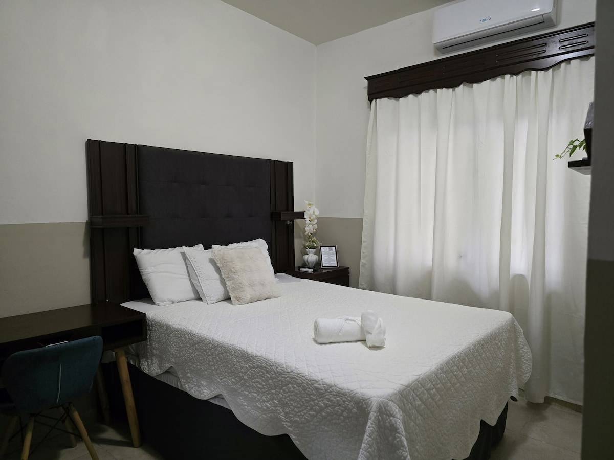Αυτό το διαμέρισμα βρίσκεται μέσα σε ένα ξενοδοχείο σε μια αποκλειστική περιοχή της πόλης. Απολαύστε την άνεση ενός ιδιωτικού χώρου με κλιματισμό, WiFi υψηλής ταχύτητας και έξυπνη τηλεόραση για να νιώσετε σαν στο σπίτι σας. Επιπλέον, θα έχετε πρόσβαση σε ασφαλή χώρο στάθμευσης και ρεσεψιόν, εξασφαλίζοντας μια ξέγνοιαστη διαμονή. Είτε είστε εδώ για δουλειές είτε για ευχαρίστηση, το διαμέρισμά μας είναι το ιδανικό μέρος για να χαλαρώσετε και να απολαύσετε όλα όσα προσφέρει το Σαν Πέδρο Σούλα.