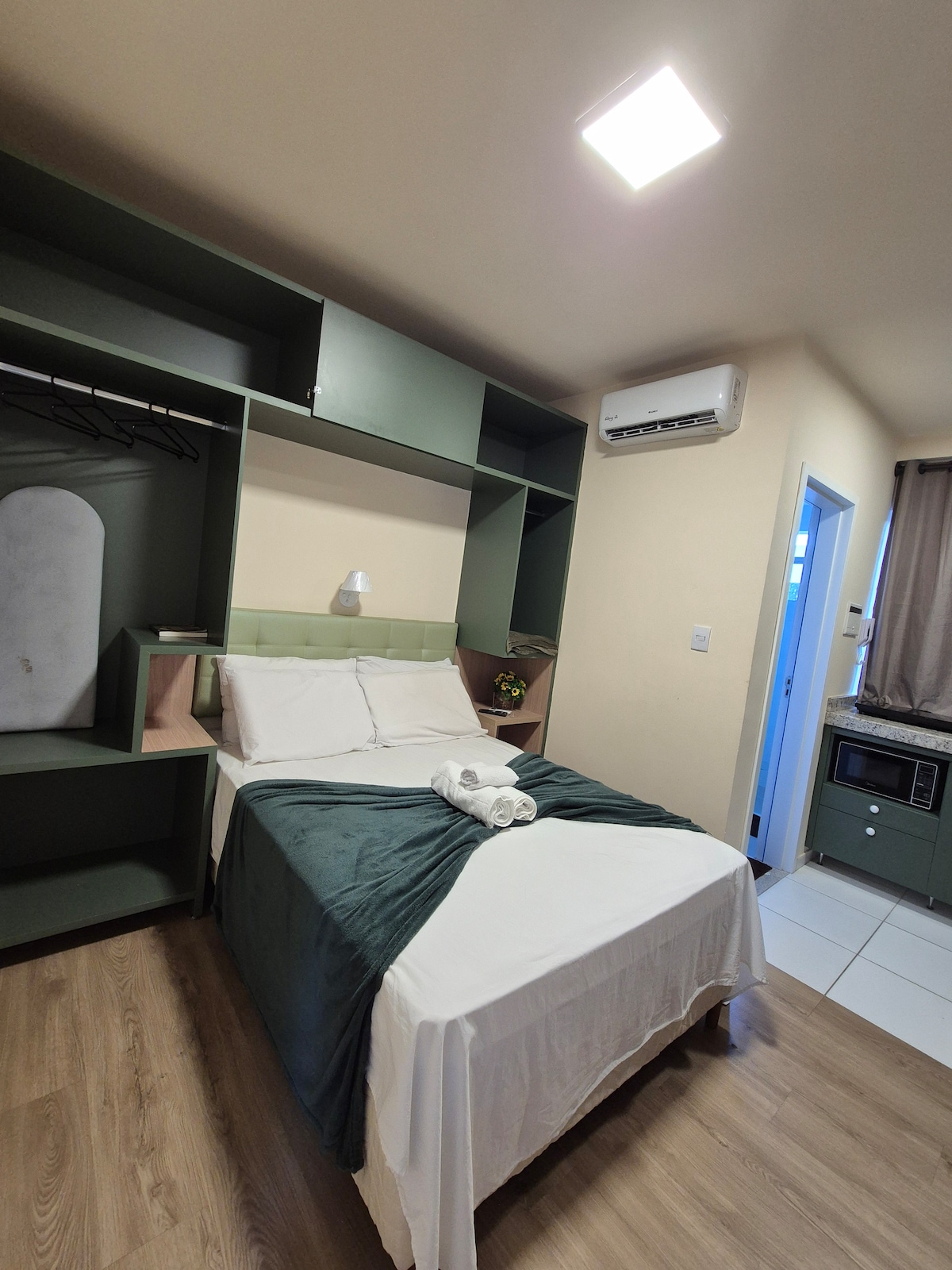 Μεγάλο, κλιματιζόμενο διαμέρισμα με πλήρως εξοπλισμένη κουζίνα, στο Alto Centro de Belo Horizonte! Γνωρίστε το Guaja 745! Το διαμέρισμα διαθέτει: - Κλιματισμό. - Airfryer - Φούρνος μικροκυμάτων. - Μικρό ψυγείο. - Καφετιέρα - Παιχνίδια δείπνου και ποτήρια για δύο άτομα. - Τραπέζι με 2 καρέκλες. - Γραφείο γραφείου. - Smart TV 42'. - Wi-Fi. - Πιστολάκι για τα μαλλιά . Πρίζες 220v Πλυντήριο και στεγνωτήριο διαθέσιμα για χρήση με χρέωση. Προνομιακή τοποθεσία, κεντρική, κοντά στο Savassi.