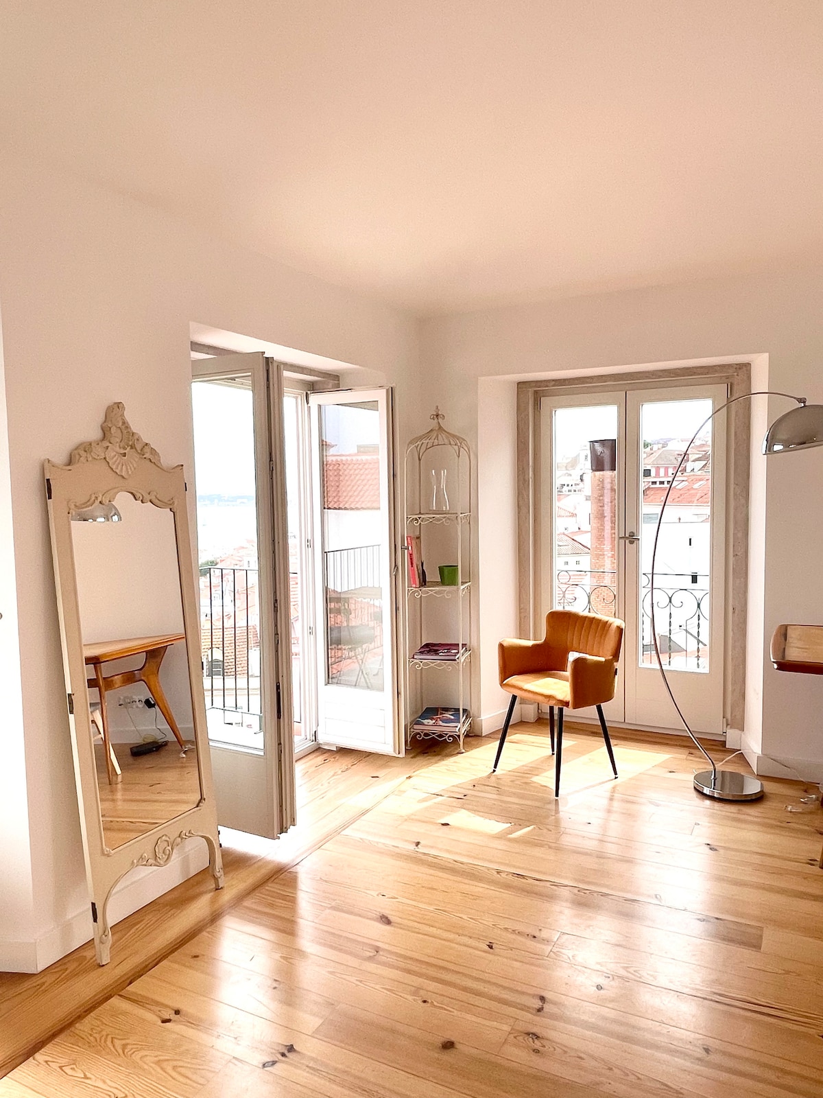 Διαμέρισμα 2 υπνοδωματίων, 1 με ιδιωτικό μπάνιο, πλήρως ανακαινισμένο στον 1ο όροφο ενός επίσης ανακαινισμένου κτιρίου, με καθαρή θέα στον ποταμό Τάγου. Κλιματιστικό και στα δύο υπνοδωμάτια και κεντρική θέρμανση σε όλο το διαμέρισμα. Εξαιρετική τοποθεσία στην Αλφάμα, κοντά στον καθεδρικό ναό Sé, σε λίγα μέτρα από το μετρό (terreiro do Paço), το τραμ και το λεωφορείο.