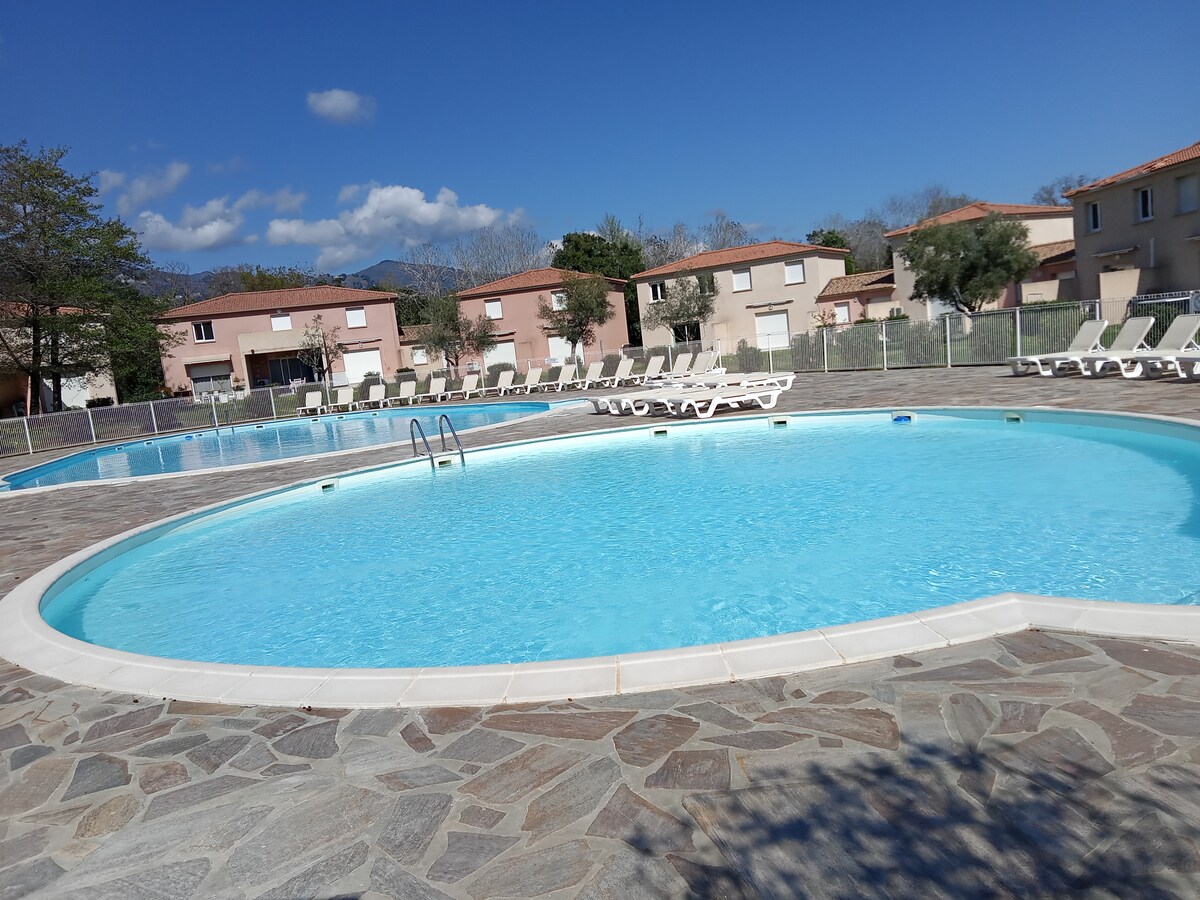 Υπέροχη μίνι βίλα T2 με ιδιωτική πισίνα χωρίς θέρμανση. Κλιματιζόμενη, με όλες τις ανέσεις σε όμορφη ιδιοκτησία, με πανοραμική θέα στα βουνά, θα σας εκπλήξει. Σε αυτόν τον φυσικό χώρο όπου μπορείτε να παρατηρήσετε μερικά αρπακτικά (Mylan), αυτή η μικρή γωνιά σας προσφέρει ένα δείγμα αυτού που θα ανακαλύψετε στο νησί μας. Κοντά σε όλα τα καταστήματα, σε μια ήσυχη γειτονιά, 15 λεπτά από την Bastia, 10 λεπτά από τη θάλασσα, 15 λεπτά από το αεροδρόμιο Poretta, 20 λεπτά από το Saint Florent.