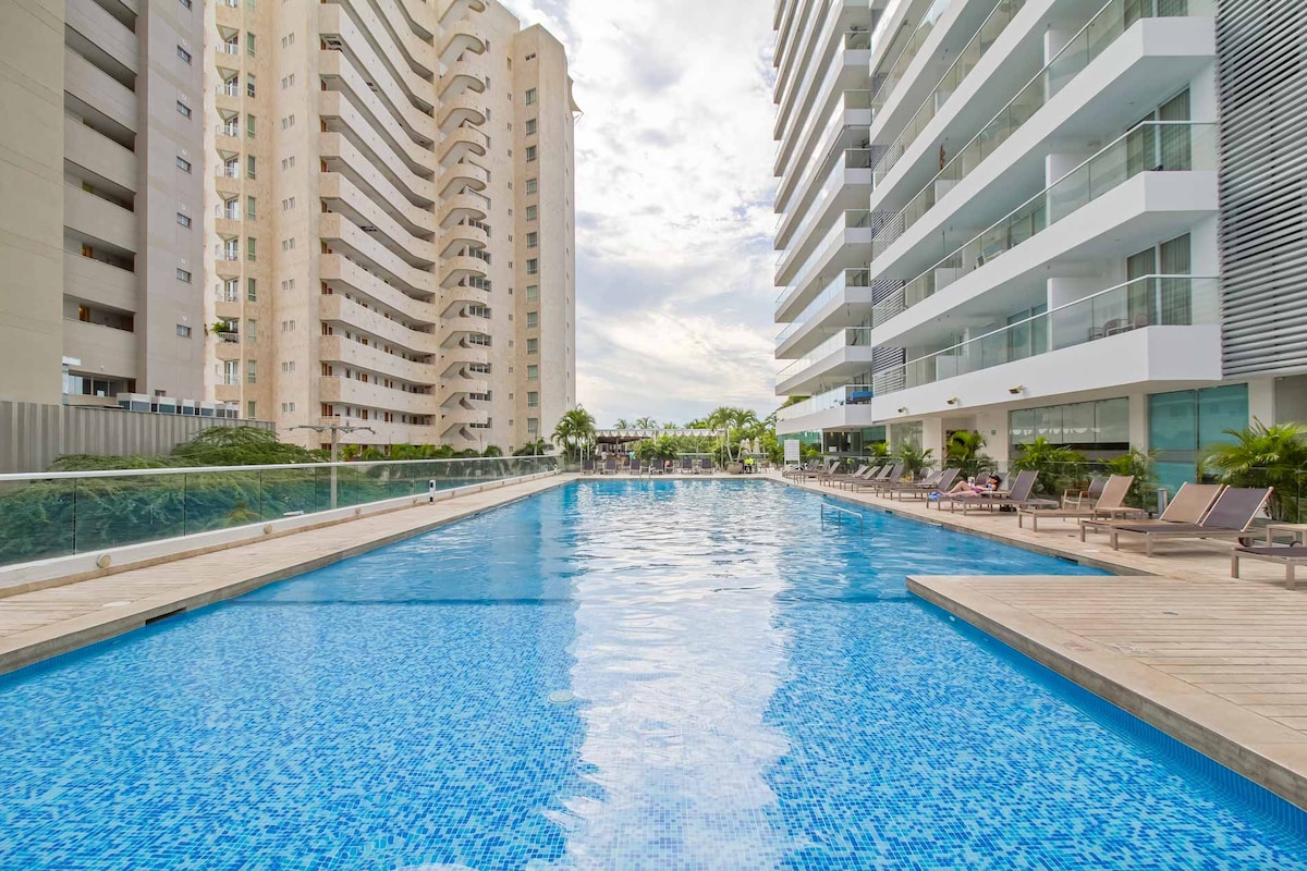 Escápate a este paraíso frente al mar y vive una experiencia de lujo en Santa Marta 🌴🏖️🌴🌊🌴 Vive en condominio exclusivo en primera línea con playa semi-privada con acceso directo al mar, piscinas tipo resort, jacuzzis climatizados y restaurante delicioso. Wifi de 200 Mbps ideal para teletrabajo o workation y a solo 5 minutos del aeropuerto. Perfecto para parejas, familias pequeñas o escapadas de trabajo remoto. Check-in autónomo 24/7 ideal para vuelos tardíos