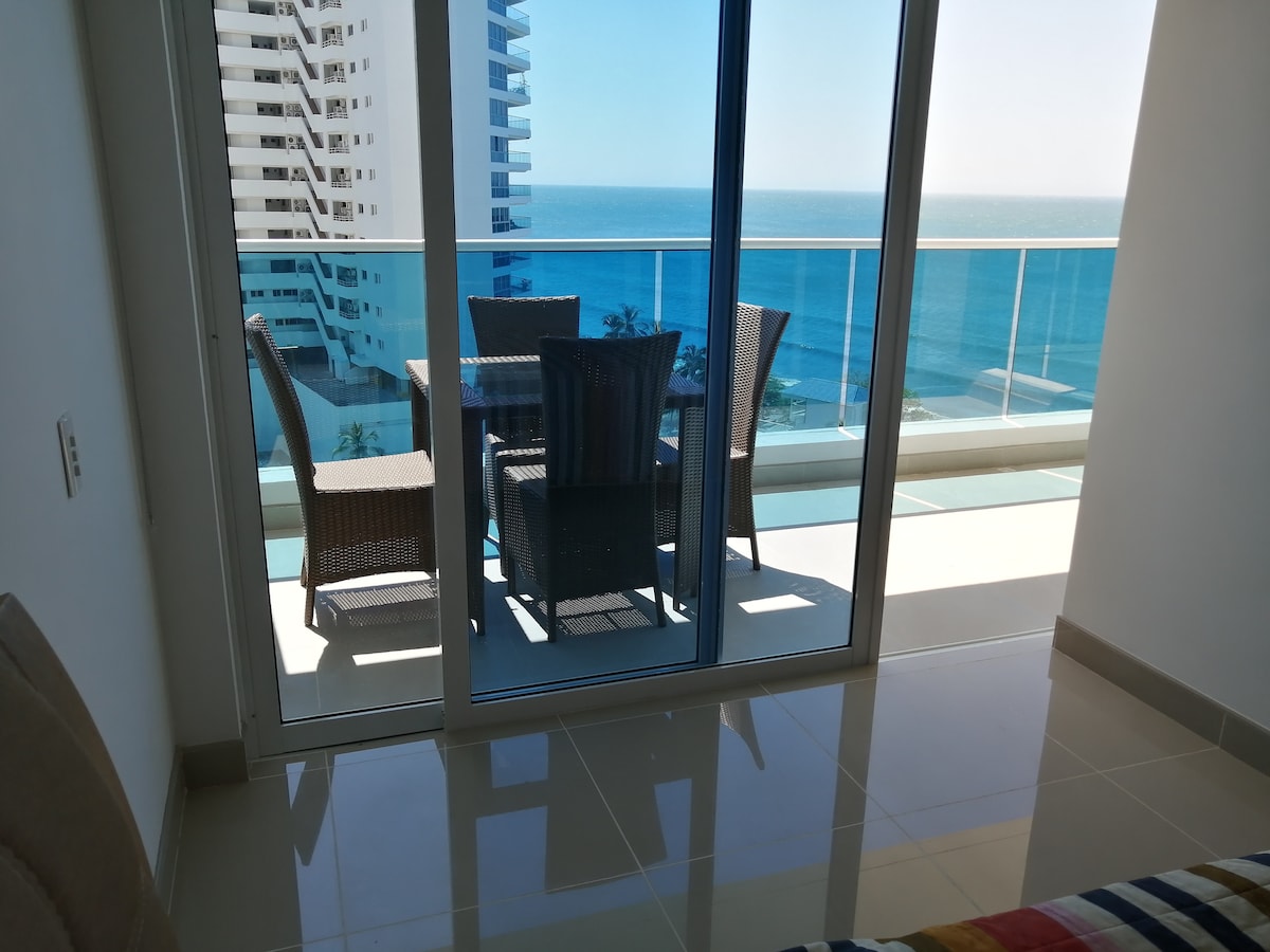 Απολαύστε ένα πολυτελές διαμέρισμα μπροστά στη θάλασσα, στην προνομιακή περιοχή του Rodadero, που βρίσκεται 15 λεπτά από το διεθνές αεροδρόμιο Simón Bolivar. Είναι ένα αποκλειστικό θέρετρο με άμεση πρόσβαση στην παραλία, με εκπληκτική θέα, διαθέτει φωτεινό σαλόνι, ιδιωτικό μπαλκόνι, κύριο υπνοδωμάτιο με κρεβάτι king size και εξοπλισμένη κουζίνα. Το θέρετρο προσφέρει πισίνες, τζακούζι, γυμναστήριο, εστιατόριο, μπαρ και 24/7 ασφάλεια. Ιδανικό για οικογένειες ή ζευγάρια, συνδυάζει άνεση, κομψότητα. Κλείστε τη διαμονή σας τώρα!