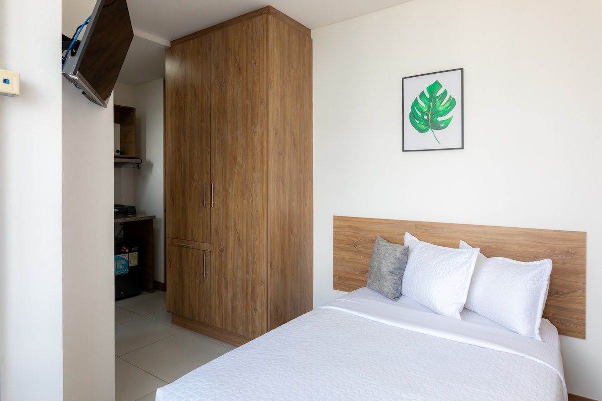 Ζήστε την εμπειρία της Plaza U σε αυτό το στούντιο στον 6ο όροφο στην Περέιρα, ιδανικό για την άνεσή σας. Εξοπλισμένο με: 🛏️ Κρεβάτι για ξεκούραση. ✍️ Γραφείο για εργασία ή μελέτη. 👕 Ντουλάπα, εξοπλισμένη μικρή 🍳 κουζίνα και ιδιωτικό 🚿 μπάνιο. Περιλαμβάνει: Wi-Fi οπτικών ινών, συνεργασία, αίθουσα συνεδριάσεων, βεράντα και πλυντήριο. 2 λεπτά από το Τεχνολογικό Πανεπιστήμιο του Πιερέιρα, κλινικές, κέντρα ομορφιάς, καταστήματα, εστιατόρια και ένα 24ωρο Oxxo. Ιδανικό για να συνδεθείτε και να ξεκουραστείτε! 🚀
