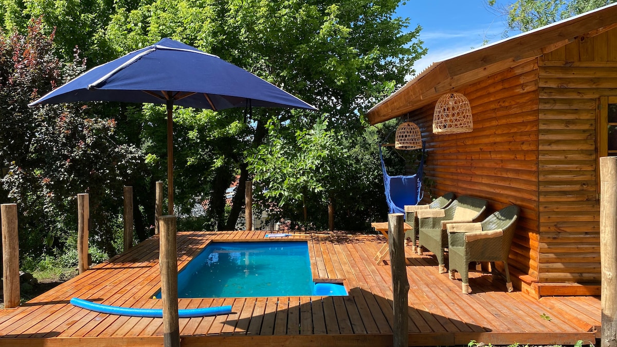 Ξυλόσπιτο με πισίνα και ιδιωτικό πάρκο.