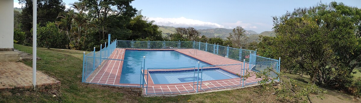 Μεγάλο, ασφαλές, ήσυχο σπίτι και σαλέ με μεγάλους κήπους, θέα στην ύπαιθρο και εκπληκτικά ηλιοβασιλέματα. Τέσσερα υπνοδωμάτια με ιδιωτικό μπάνιο και ανεμιστήρα, διώροφη βίλα με κλιματιστικό, μπάνιο και ανεμιστήρα. Πισίνες για ενήλικες και παιδιά, τσουλήθρα, μπάρμπεκιου, γήπεδο βόλεϊ/ποδοσφαίρου, τραπέζι παιχνιδιών, αιώρες, φωτιά και παρατήρηση πουλιών. Μεγάλη εξοπλισμένη κουζίνα, τραπεζαρία, σαλόνι με 65" Smart TV και ήχο surround. WiFi και ιδιωτικό πάρκινγκ. 25 χιλιόμετρα από την Bucaramanga, 3 χιλιόμετρα από το αεροδρόμιο και 50 χιλιόμετρα από τη δεξαμενή Topocoro.