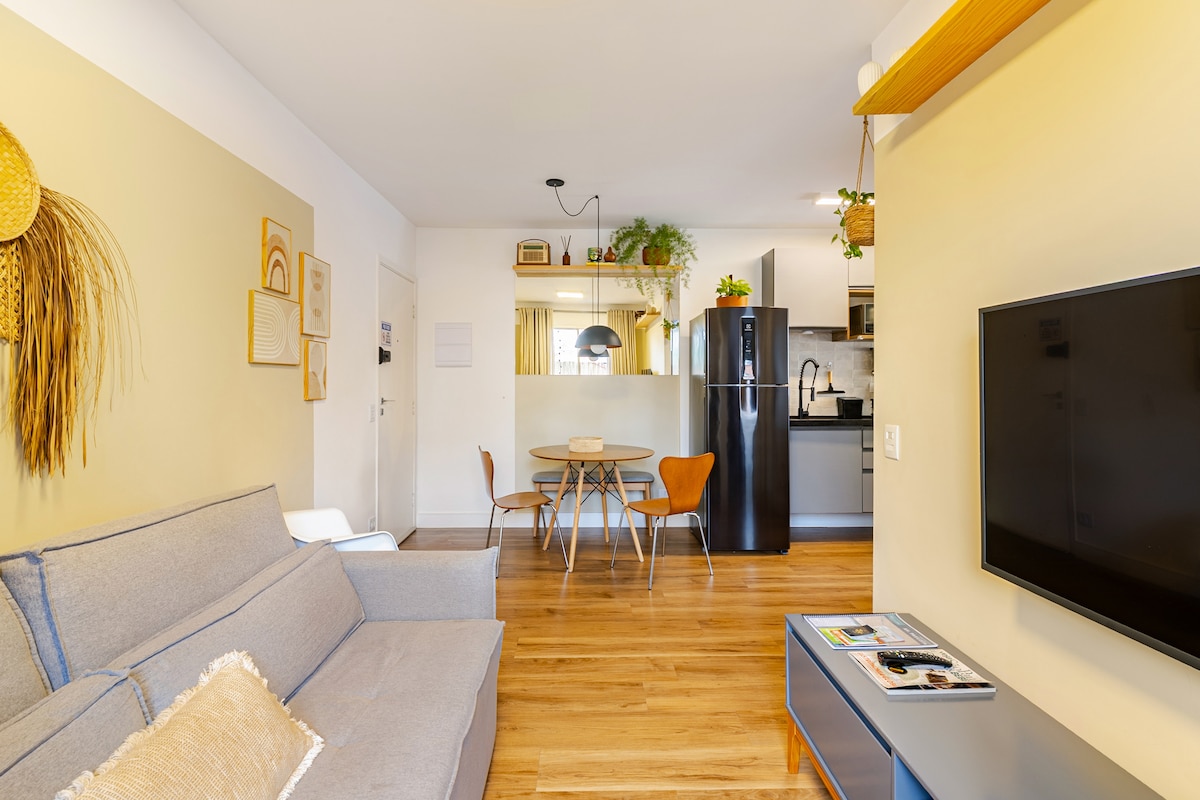 ✅ Εξαιρετική τοποθεσία στην Consolação • Σε κοντινή απόσταση με τα πόδια από δύο γραμμές του μετρό: Higienópolis-Mackenzie (Γραμμή 4) και Anhangabaú (Γραμμή 3) • Κοντά στη Λεωφόρο Paulista, Rua Avanhandava (γνωστή για τα ιταλικά εστιατόρια), Parque Augusta • Ασφαλής και περπατήσιμη περιοχή με σούπερ μάρκετ, φαρμακεία και καφετέριες σε κοντινή απόσταση. ✅ Κατάλληλα για εργασία εξ αποστάσεως • Wi-Fi υψηλής ταχύτητας 500mbps • Ειδικός χώρος εργασίας με εργονομική καρέκλα και γραφείο • Πλήρως εξοπλισμένη κουζίνα, αν προτιμάτε να μαγειρέψετε αντί να φάτε έξω.