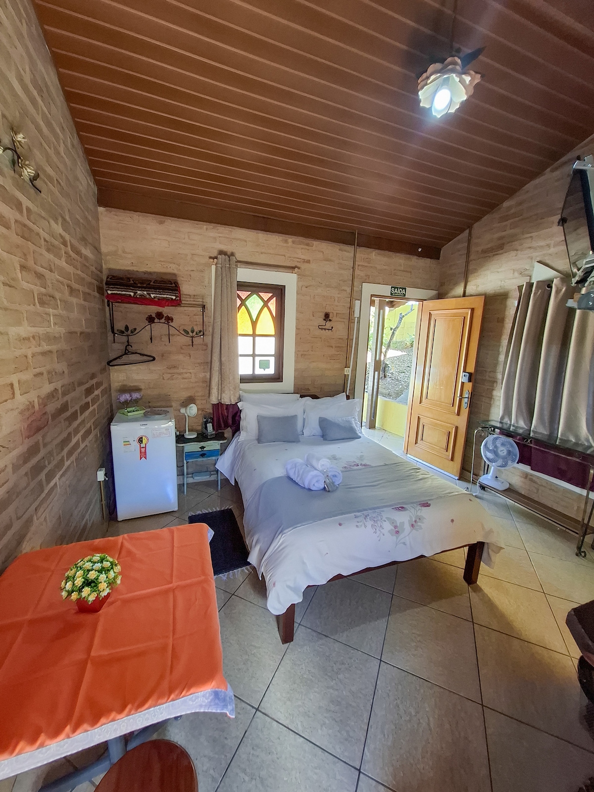 Ρουστίκ και ρομαντικό σαλέ για ζευγάρια ή μεμονωμένα άτομα. Με μια όμορφη θέα στην κοιλάδα του Sapucaí, και στο κύριο τουριστικό σημείο Pedra do Baú. Ήρεμο και ήσυχο μέρος με εύκολη πρόσβαση. Βρισκόμαστε 200 μέτρα από τον αυτοκινητόδρομο, 2 χιλιόμετρα από το θέρετρο NR 2 στο Σάντο Αντόνιο ντο Πινάλ, και 9 χιλιόμετρα από το θέρετρο NR1 στο Sapucaí Mirim MG