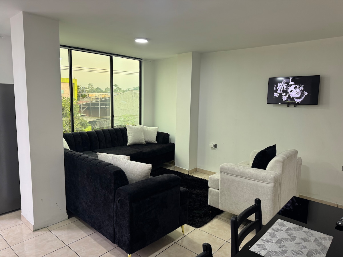 Αποδράστε σε έναν μοντέρνο και κομψό χώρο στον Άγιο Δομίνικο. Αυτό το πολυτελές διαμέρισμα βρίσκεται σε μια ασφαλή κατοικημένη περιοχή, λίγα λεπτά από το Paseo Shopping, το νέο Bombolí Shopping, τον σταθμό λεωφορείων, την Plaza La Quadra και τη διάσημη Calle del Colesterol, γνωστή για τη γαστρονομία της. Απολαύστε κλιματισμό σε κάθε δωμάτιο, home cinema, ευρύχωρα διπλά κρεβάτια, ένα δωρεάν μπουκάλι κρασί και ιδιωτικό πάρκινγκ με ηλεκτρική πύλη.