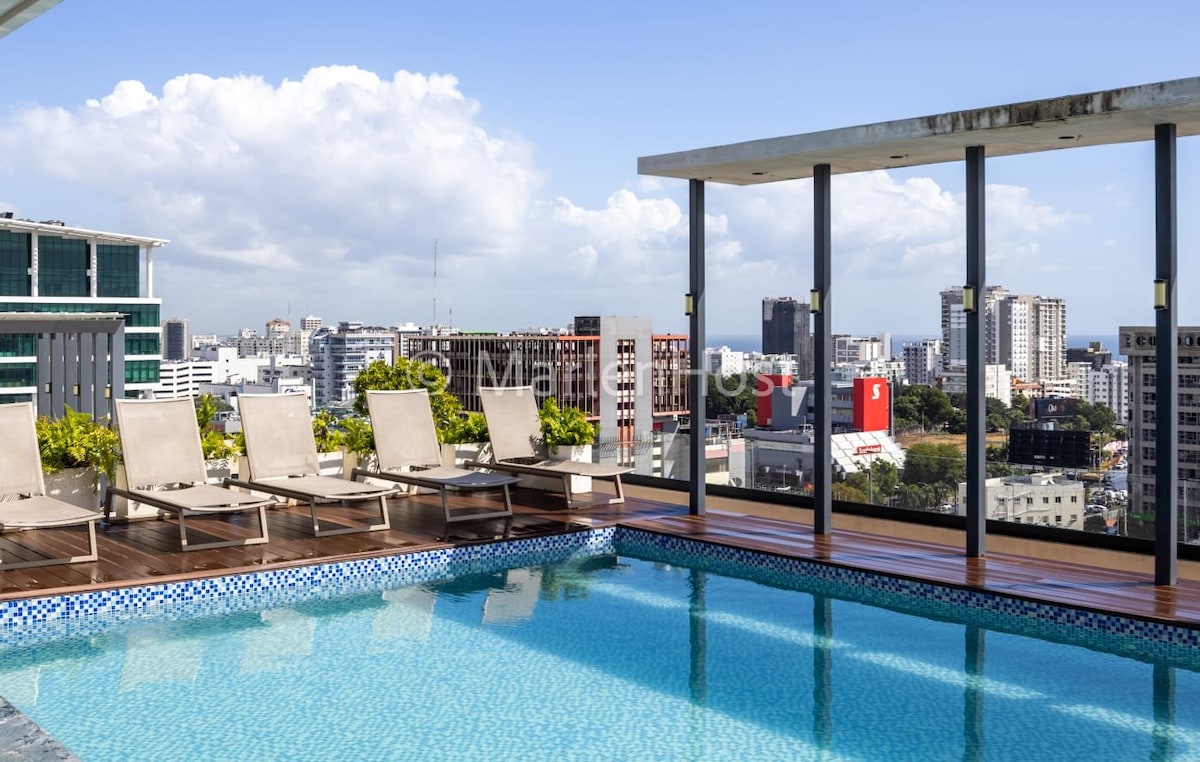Luxury Apt/Rooftop Pool/Γυμναστήριο/1BDR Kingsize/Piantini