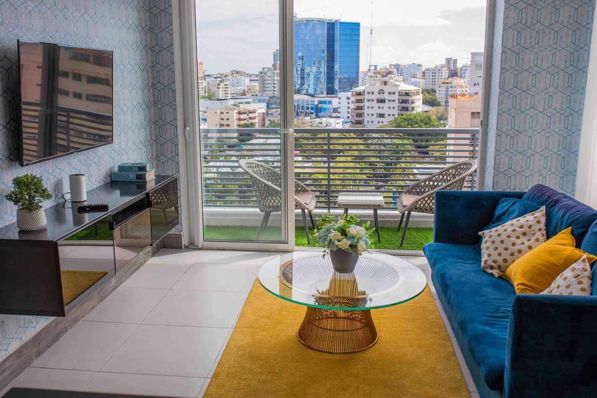 Apartamento de 1habitación ubicado en la Torre de lujo JR IV. Si lo que andas buscando es comodidad, seguridad y amenidades, aquí lo encontrarás. Para vacaciones, trabajo o simplemente para salir de la rutina diaria con tu pareja, ¡este apartamento es perfecto! Ubicado en el corazón del Distrito Nacional a pocos metros de restaurantes, bares, centros comerciales y del pulmón de la ciudad: El Parque Mirador Sur.