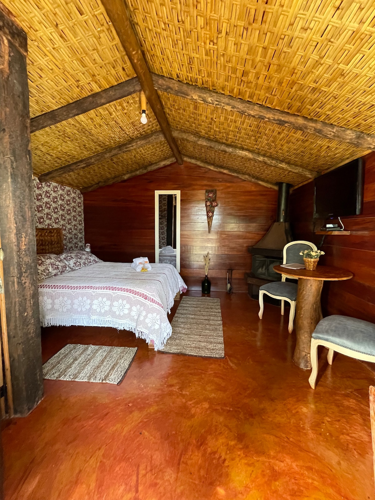 Τι θα λέγατε να περάσετε μερικές ημέρες σε ένα ρουστίκ ξυλόσπιτο γεμάτο στυλ και ρομαντισμό; Το ξυλόσπιτό μας περιβάλλεται από τη φύση, θα έχετε το προνόμιο να δείτε βουνά και να ακούσετε το κελάηδισμα των πουλιών μόλις ξημερώσει. Το βράδυ μπορείτε να δείτε τον έναστρο ουρανό και να καθίσετε γύρω από τη φωτιά μας ή στην άνετη αιώρα μας. Και για να τελειώσετε την ημέρα, κάντε ένα χαλαρωτικό μπάνιο στο υδρομασάζ μας.