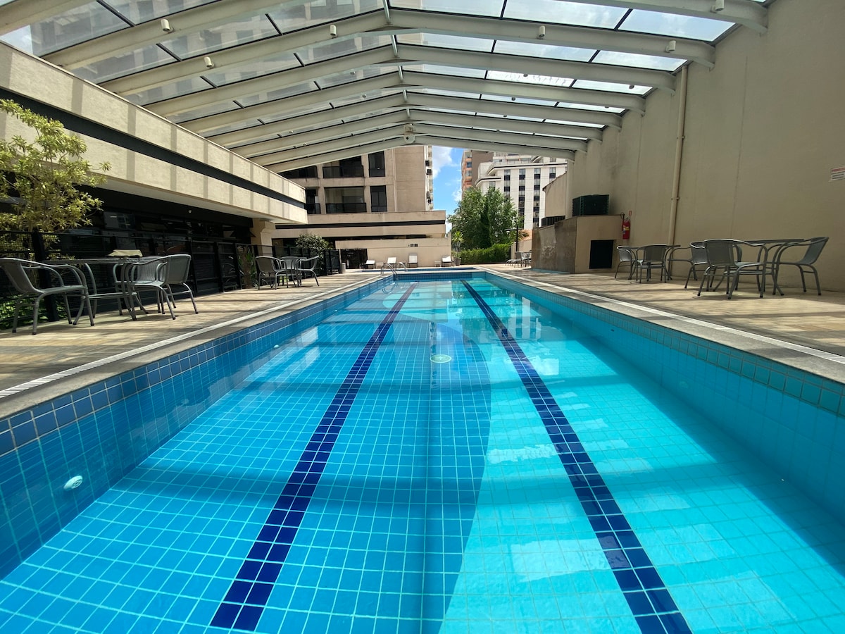 Διαμέρισμα 46 τ.μ. με υπνοδωμάτιο, σαλόνι, αμερικανική κουζίνα, ΧΩΡΙΣ ΦΟΥΡΝΟ, μπάνιο και μπαλκόνι. Βρίσκεται 2 τετράγωνα από τη Λεωφόρο Παουλίστα, 4 τετράγωνα από την οδό Oscar Freire, σε έναν αριστοκρατικό δρόμο της γειτονιάς Jardins de São Paulo. Κοντά σε εστιατόρια και καταστήματα. Η διαμονή περιλαμβάνει τηλεοπτικό πακέτο, Wifi και 1 θέση στάθμευσης στο κτίριο. Το κτίριο λειτουργεί ως ξενοδοχείο που προσφέρει 24ωρη υποδοχή, καθημερινή υπηρεσία καθαρισμού, πισίνα, γήπεδο σκουός, σάουνα και γυμναστήριο δωρεάν. Οι υπηρεσίες εστιατορίου παρέχονται ξεχωριστά από το ξενοδοχείο