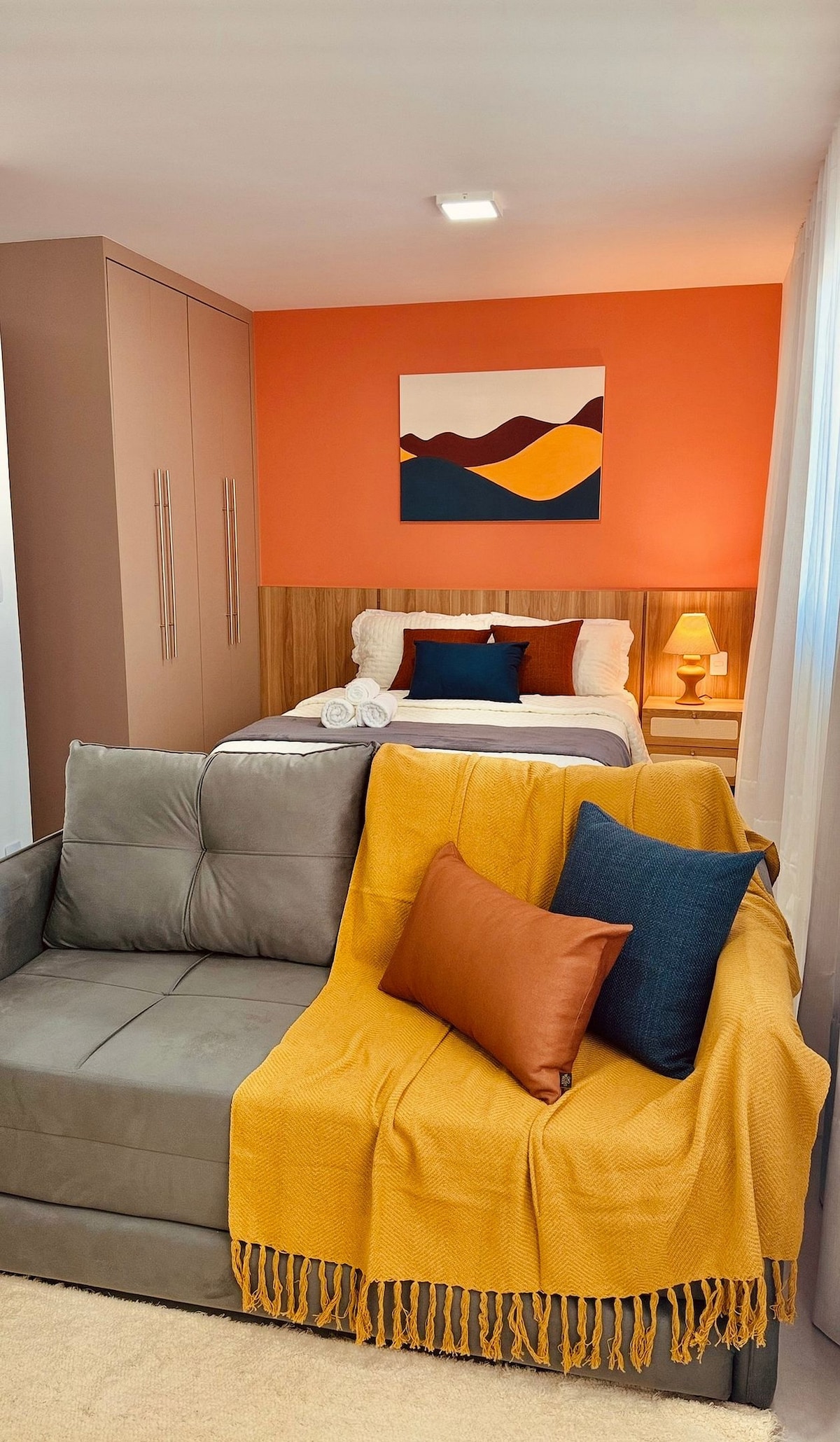 EasyFlat - Diamantina MG l | Nathom Temporadas Flat moderno e integrado e compacto localizado no Jardim Imperial, ideal para casais que buscam conforto, privacidade e praticidade (podendo instalar mais dois hóspedes em sofá-cama) | Decoração com inspiração moderna e algumas referências artísticas, ambientes planejados e uma atmosfera acolhedora e elegante.