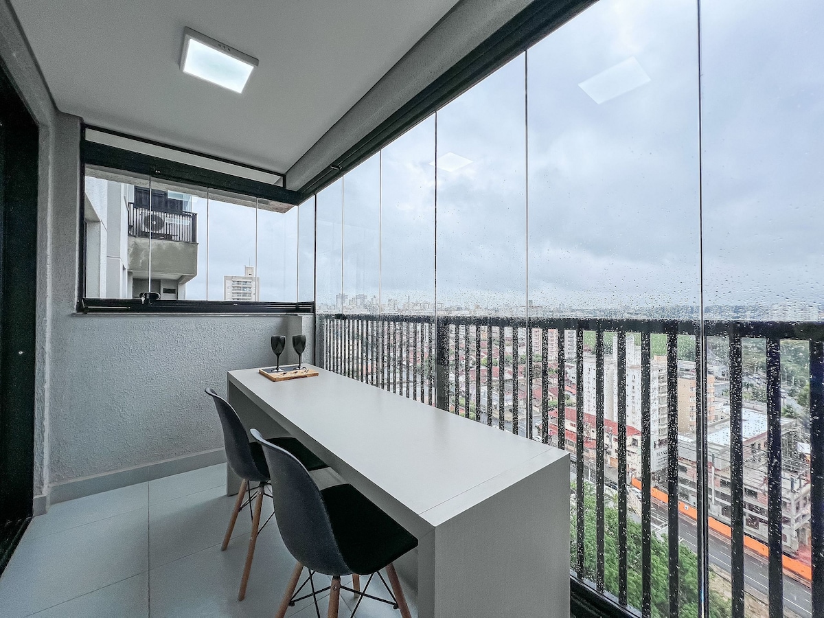 Loft diferenciado na cidade! Sacada gourmet fechada e climatizada, com mesa e cadeiras para você apreciar aquele churrasco! Quarto com cama queen com o ambiente da sala separado mantendo sua privacidade. Sala com sofá-cama, Smart TV e ar condicionado. Cozinha completa para o preparo de suas refeições. Enxoval de cama e banho completos. Vaga de garagem dupla. Vem se sentir em casa!