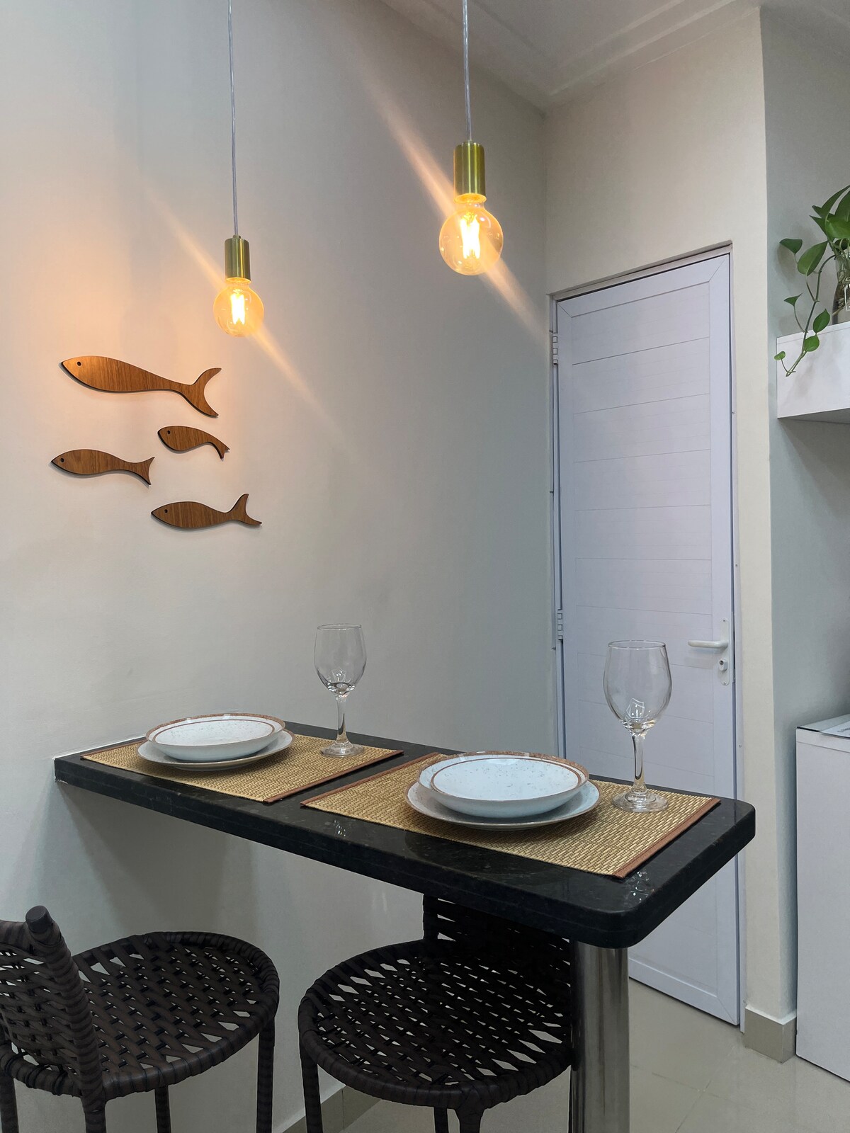 Suíte aconchegante c/ cozinha • 3 min da praia