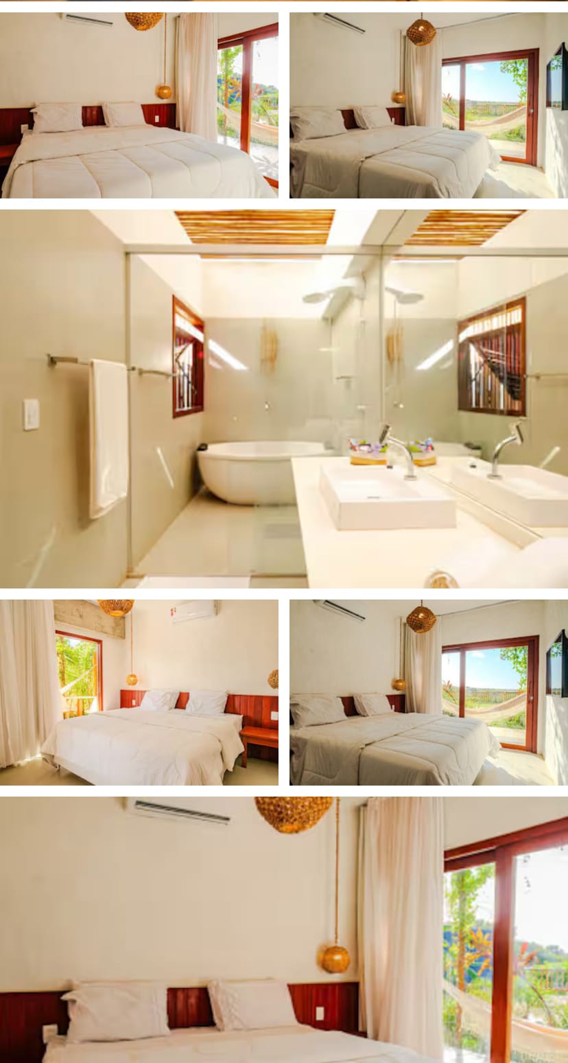 Minha propriedade possui um total de 13 suites entre elas quadruplo .triplo.e duplo . Casal . Ar condicionado,TV. Wi-fi. Frigobar restaurante Piscina e churrasqueira. Camas Quee e solteiros Lencois e toalhas Servicos de limpeza .