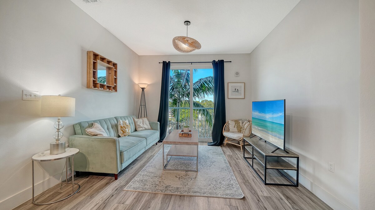Our charming and private guesthouse has the BEST location and all the comfort and tropical coastal charm you’re looking for in your next getaway! The Azure Guesthouse is completely private - outside there is a shaded and private outdoor space and inside an open loft that sleeps 2 adults, living area with sofa & smart TV, full bath, kitchenette with dining space, and laundry. Located in walkable Southside Village with restaurants and shops at your doorstep and 8 min drive to the best beaches!